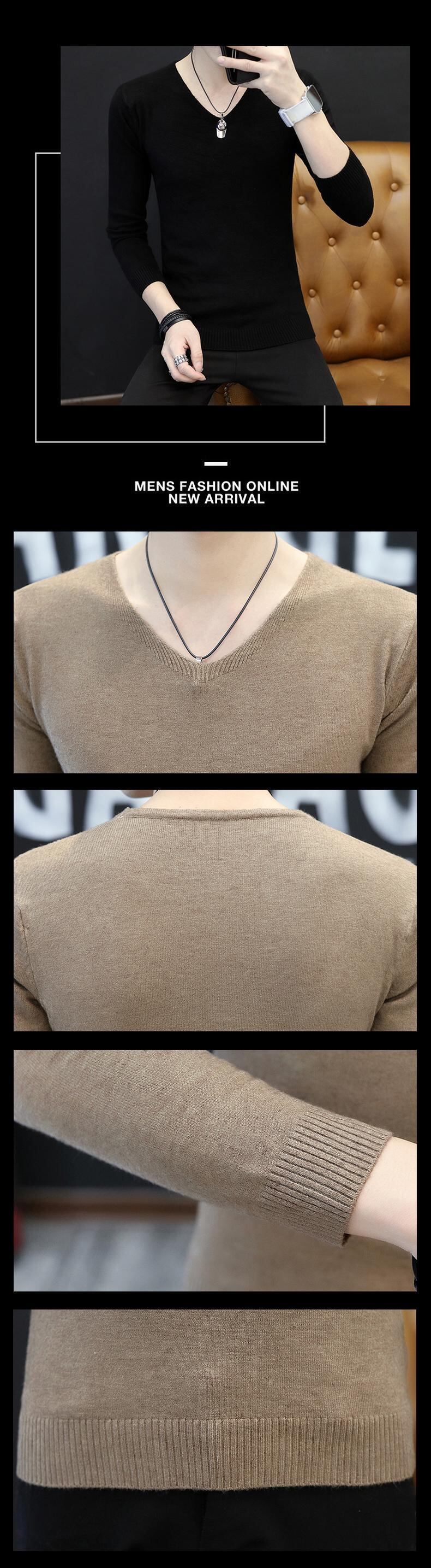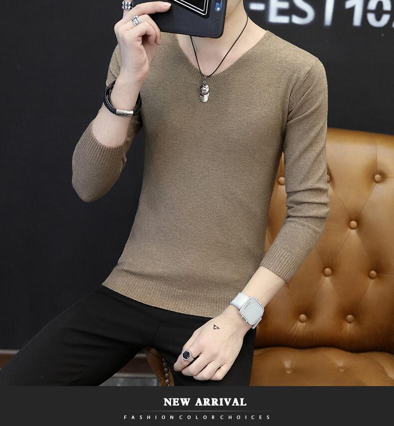Men's sweater V-neck spring and autumn thin bottoming sweater version slim solid color inner layer autumn trend men's sweater スプリング 春物 オータム 秋物 Vネック スリム ソリッドカラー doushi15468777906