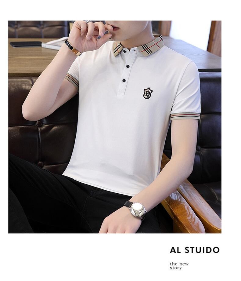 Short-sleeved t-shirt men's trend summer men's tailored shirt collar 2022 men's polo shirt version half-sleeve top clothes レッド サマー 夏物 Tシャツ doushi43510879287