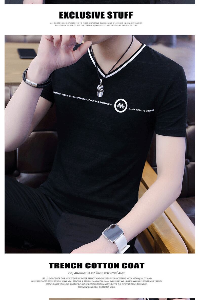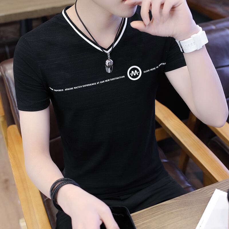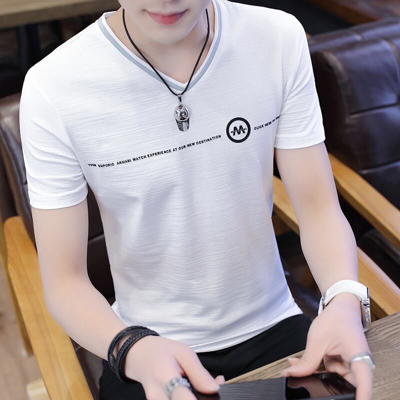 Summer new men's short-sleeved t-shirt version trend V-neck Hong Kong style men's top clothes tide brand half-sleeve t-shirt ins サマー 夏物 Vネック Tシャツ doushi46174653962
