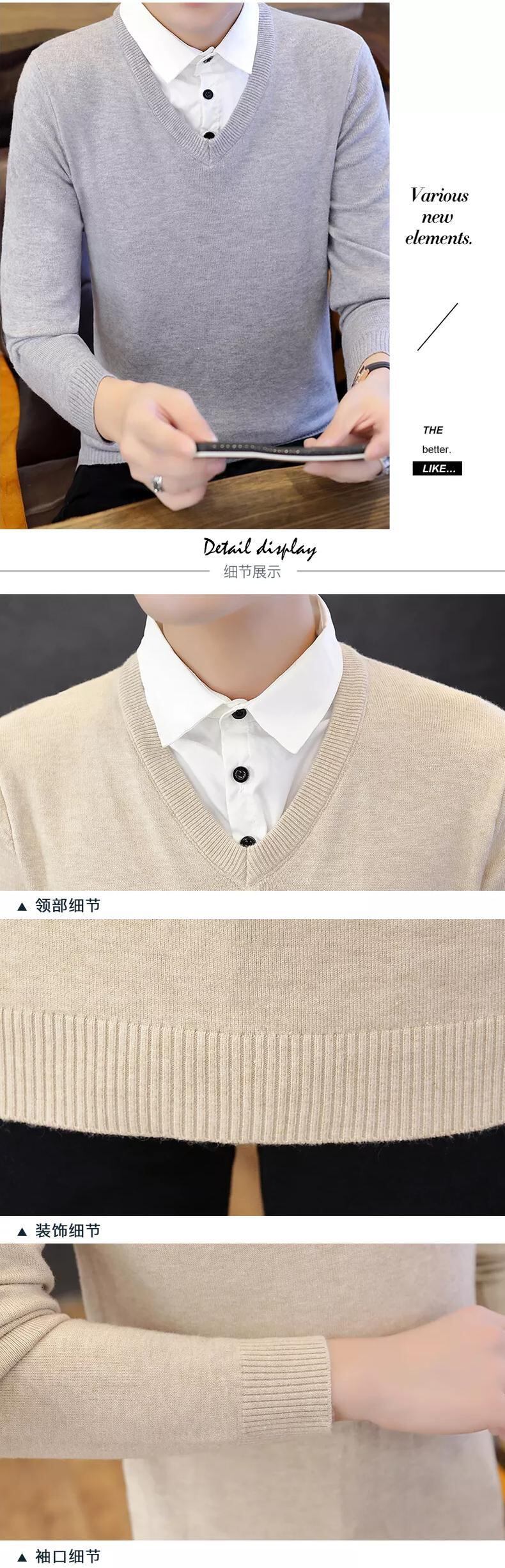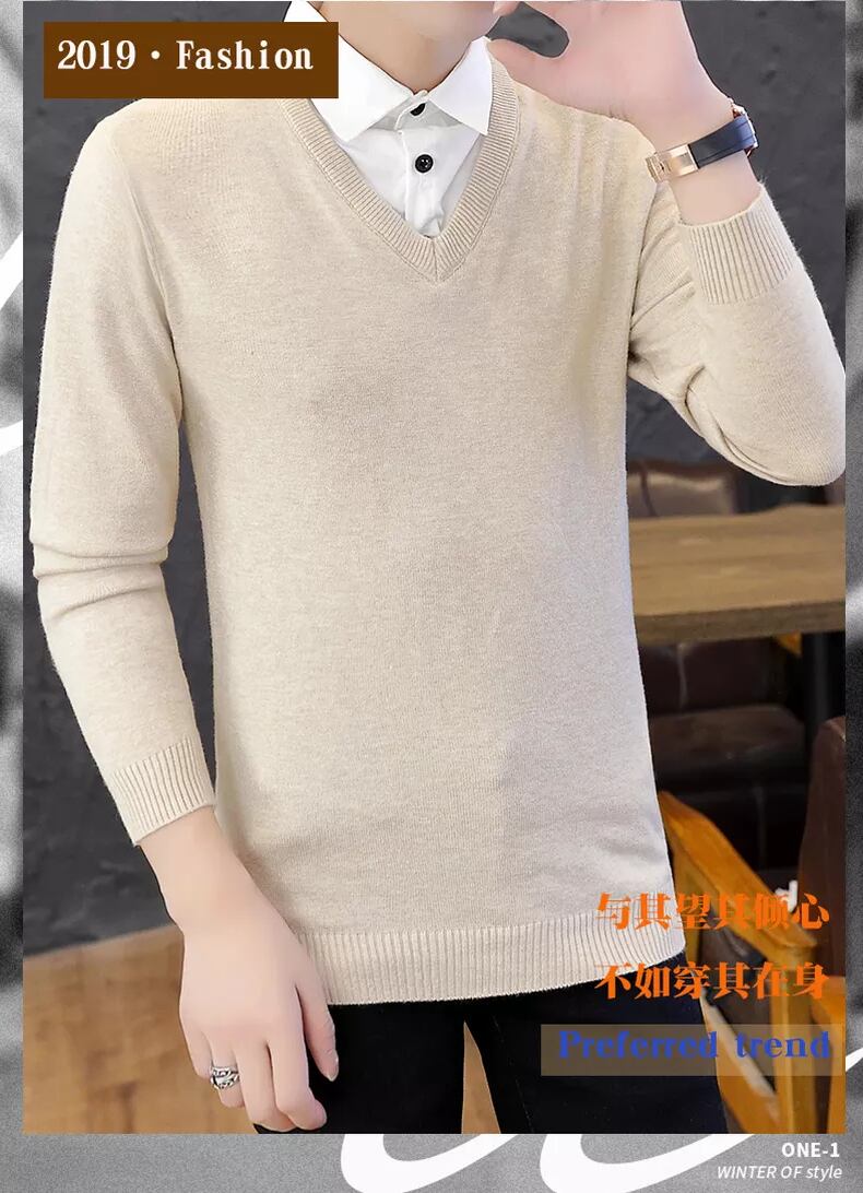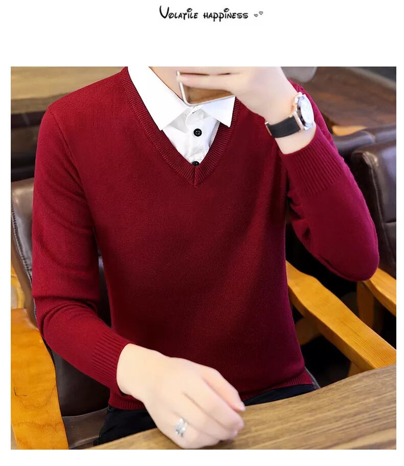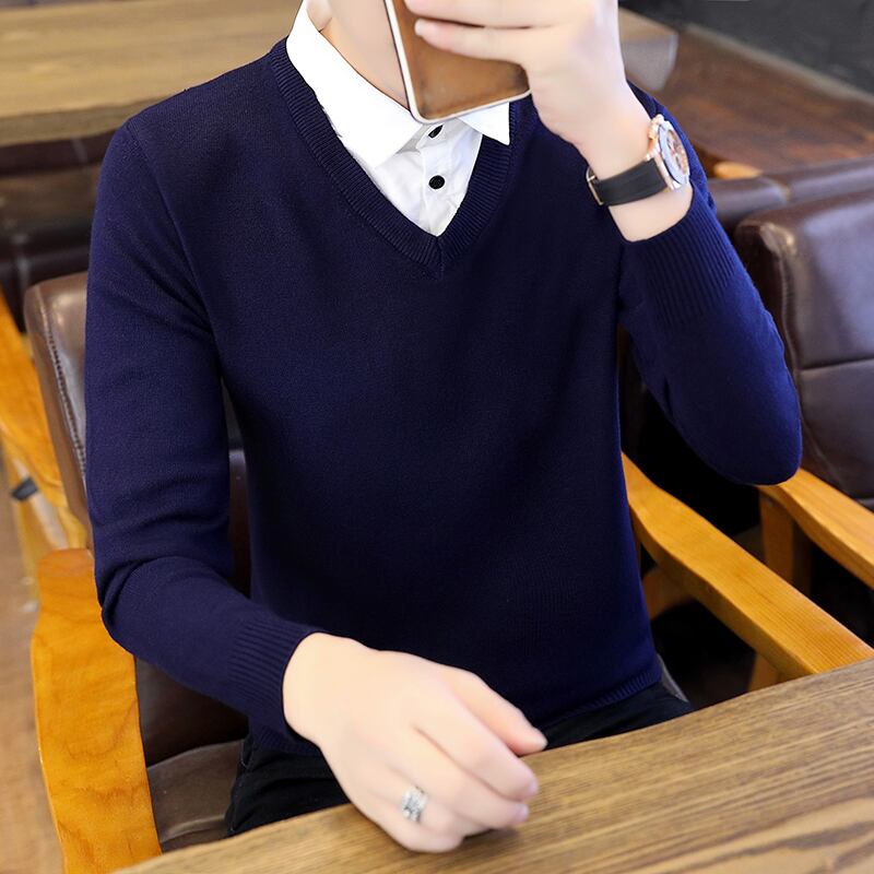 Shirt collar sweater men's fake two-piece version slim autumn and winter new trend knitted fake collar plus velvet thick bottoming shirt オータム 秋物 ウィンター 冬物 スリム doushi95947834074