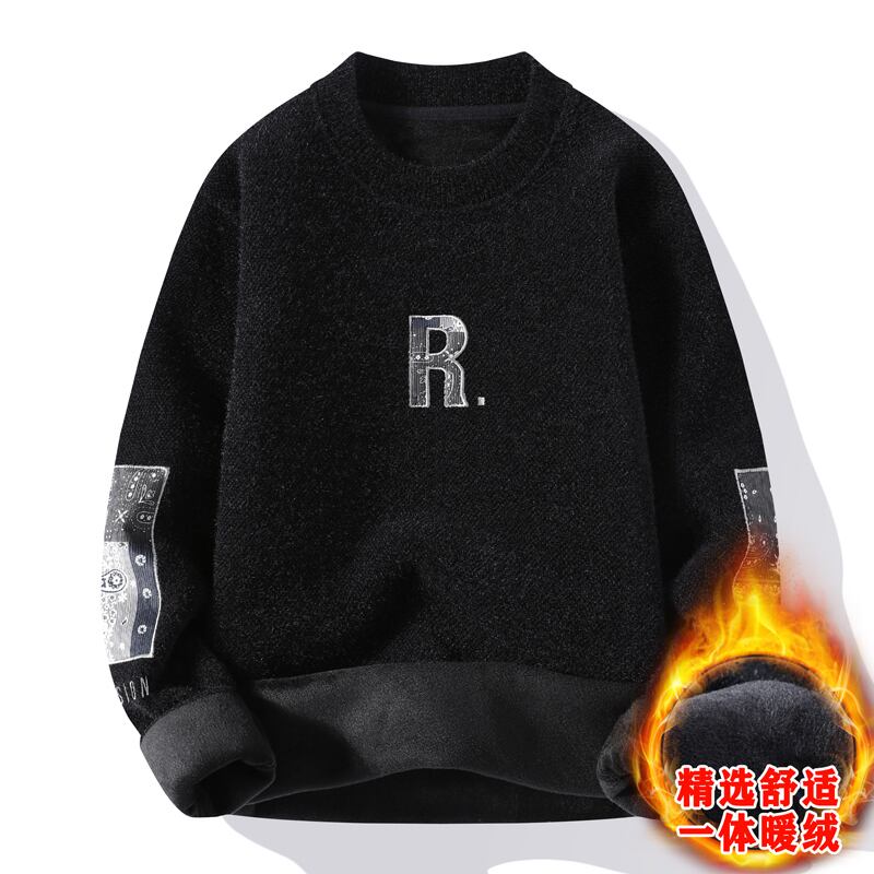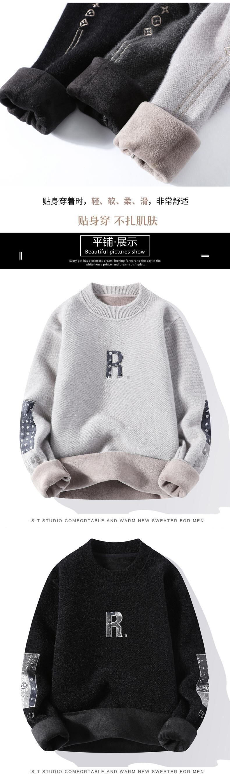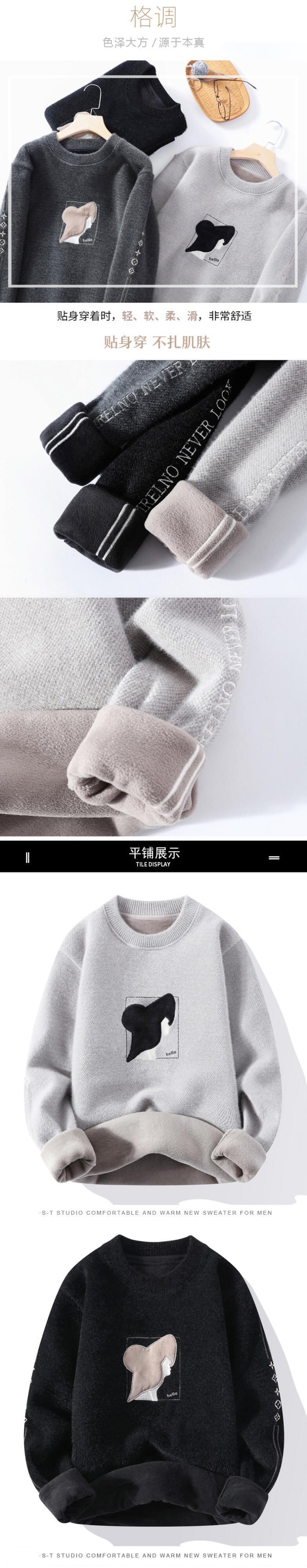 Mink velvet round neck sweater men's loose autumn and winter trend warm top all-in-one plus velvet thick bottoming sweater オータム 秋物 ウィンター 冬物 Oネック doushi66766464084