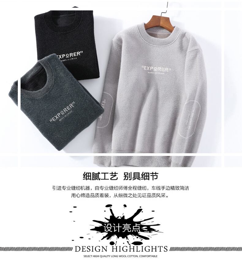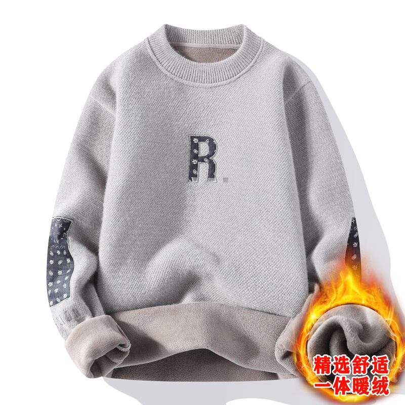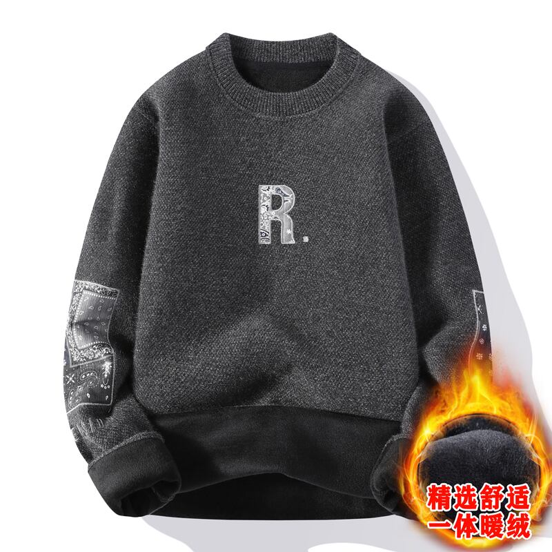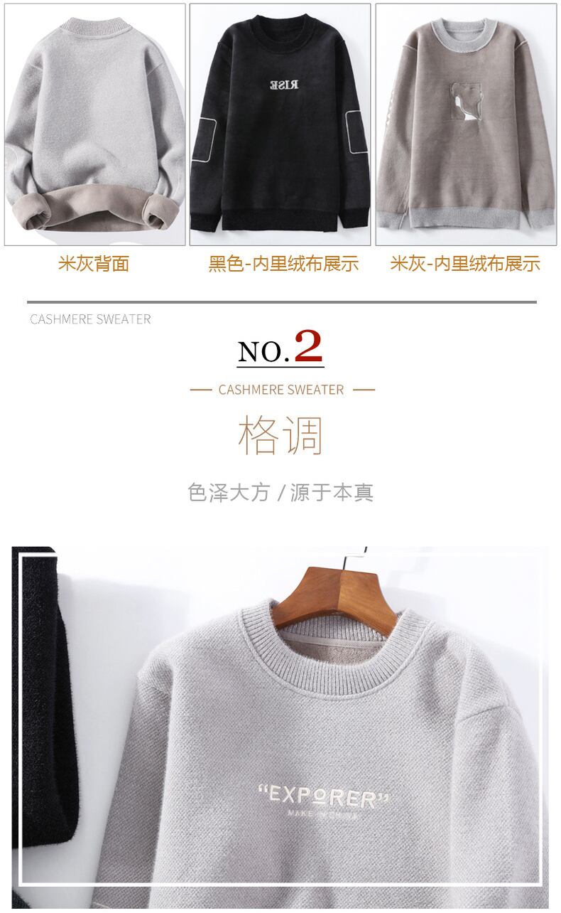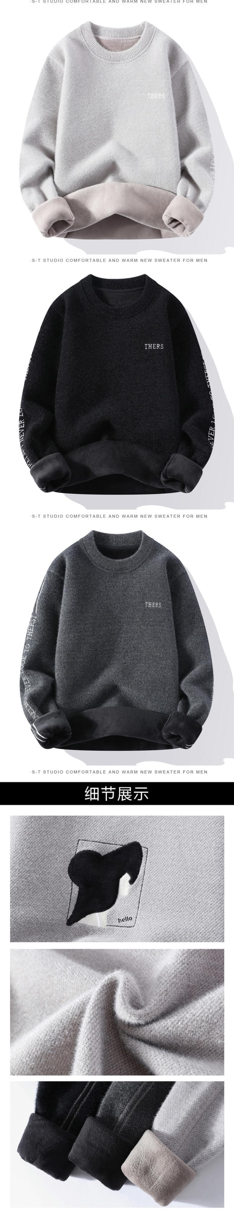 Mink velvet round neck sweater men's loose autumn and winter trend warm top all-in-one plus velvet thick bottoming sweater オータム 秋物 ウィンター 冬物 Oネック doushi66766464084