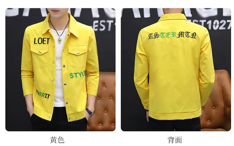 Men's Long Sleeve Shirt Collar Embroidered Slim Jacket Thin Section Autumn Handsome Trend Handsome Lapel Clothes ロング レッド 長袖 刺繍 オータム 秋物 スリム doushi67226089116