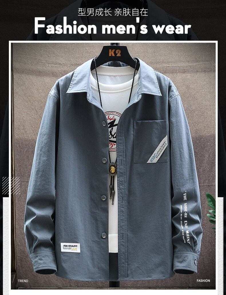 Long-sleeved shirt men's jacket version of the Hong Kong style top clothes outside the trend of autumn thin tooling handsome casual shirt ロング カジュアル オータム 秋物 doushi81515722799