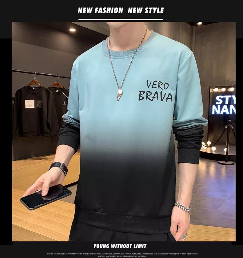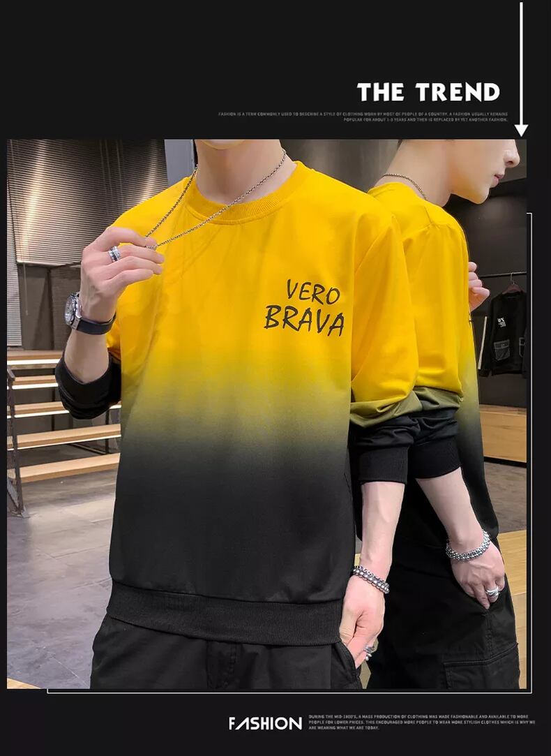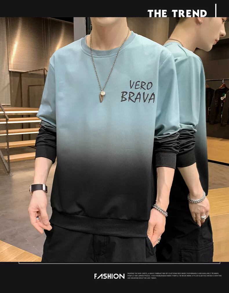 Gradient color long-sleeved T-shirt men's tide brand 2022 new spring and autumn loose round neck trend autumn casual sweater ロング カジュアル スプリング 春物 オータム 秋物 Oネック Tシャツ doushi20028609437