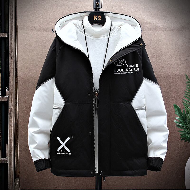 Padded men's autumn and winter Hong Kong style loose letter printing casual padded clothes version trend hooded student padded jacket カジュアル オータム 秋物 ウィンター 冬物 doushi67503148796