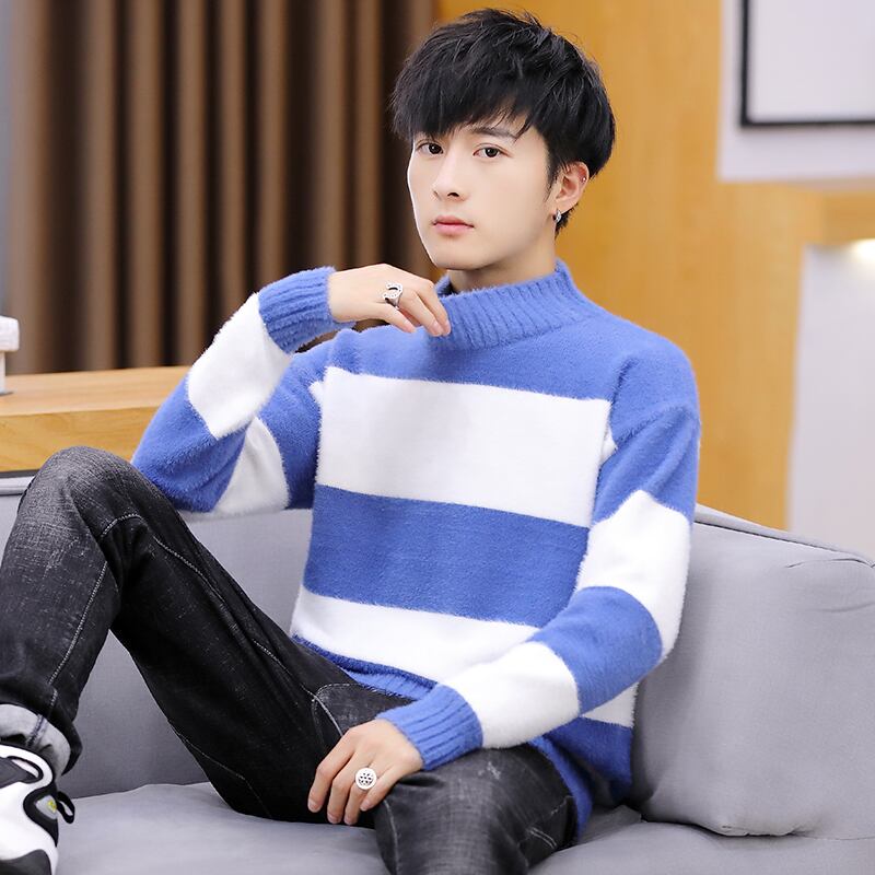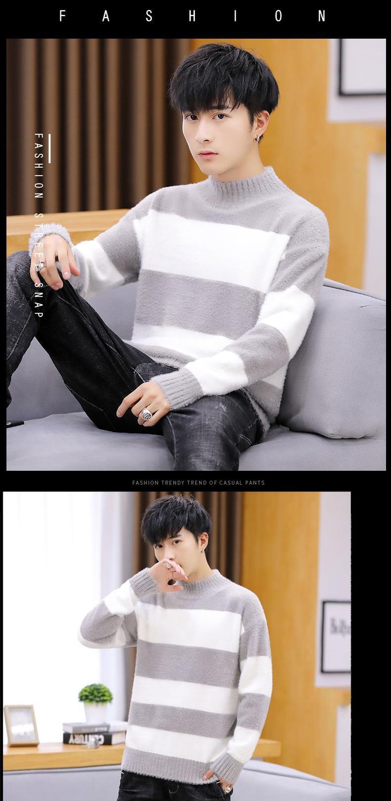 Half turtleneck sweater men's 2022 autumn and winter men's knitted new sweater youth trend imitation mink fleece bottoming shirt オータム 秋物 ウィンター 冬物 doushi28097055955