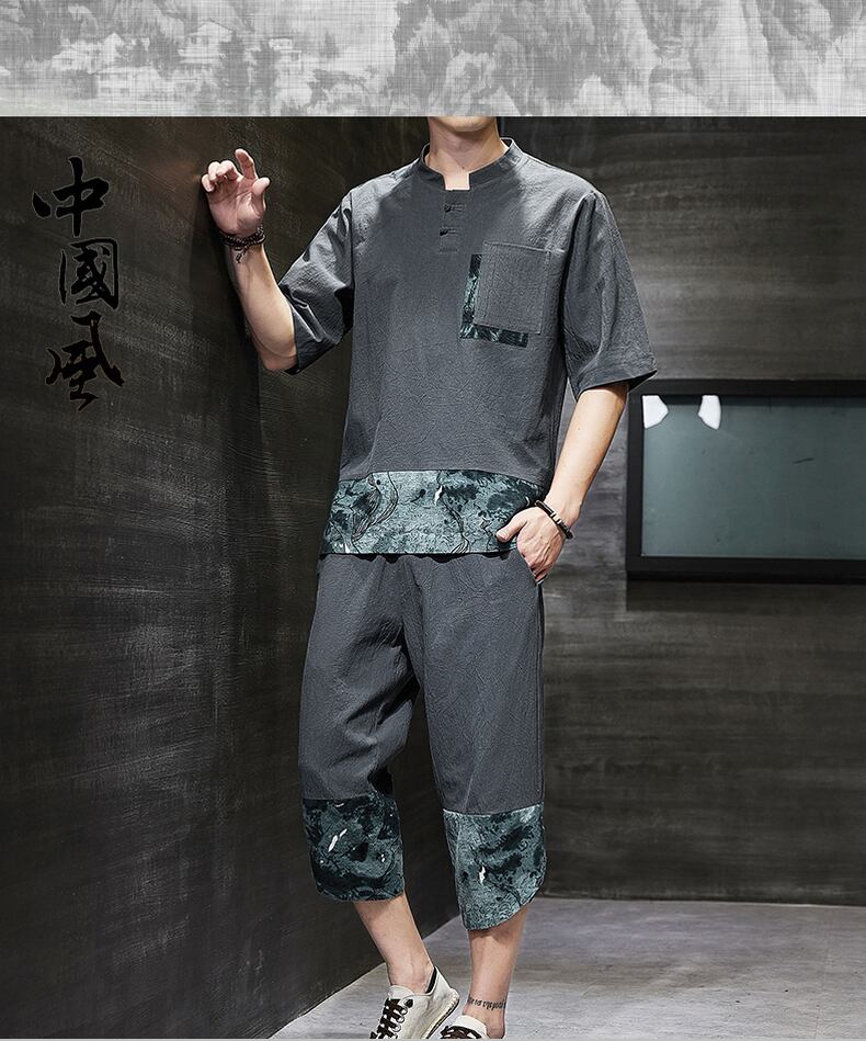 Chinese style men's summer suit men's cropped pants short-sleeved loose linen shorts Guochao cotton and linen casual pants コットン カジュアル サマー 夏物 ショーツ ブルマー doushi58290444574