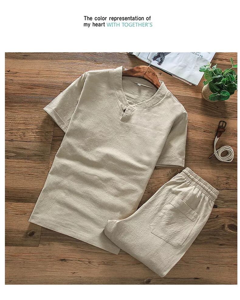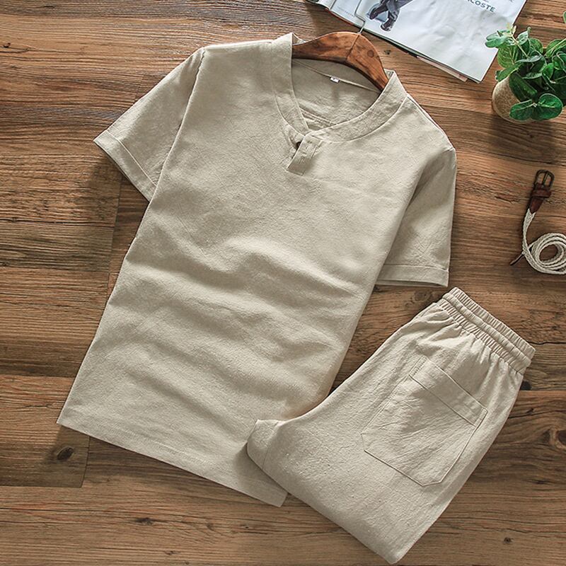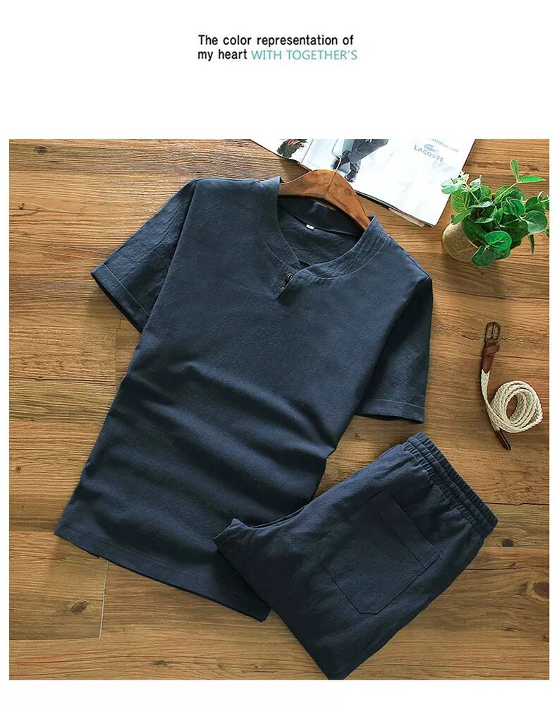 Chinese style suit men's summer cotton and linen short-sleeved t-shirt 2022 new trend casual linen clothes set コットン カジュアル サマー 夏物 Tシャツ doushi92453754173