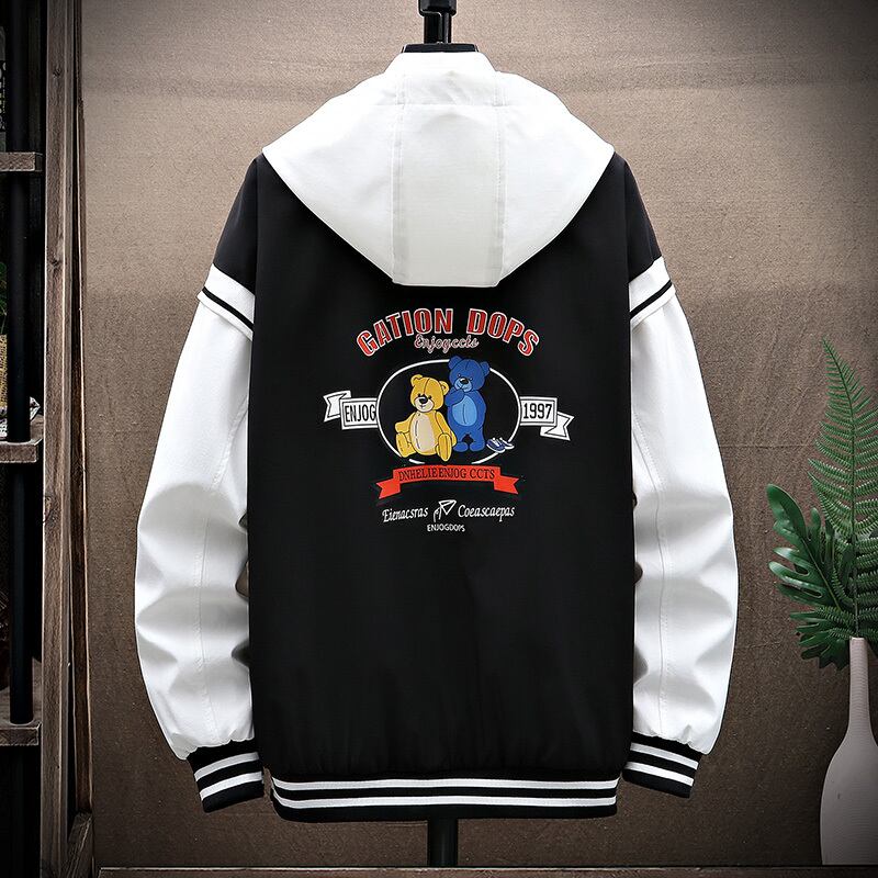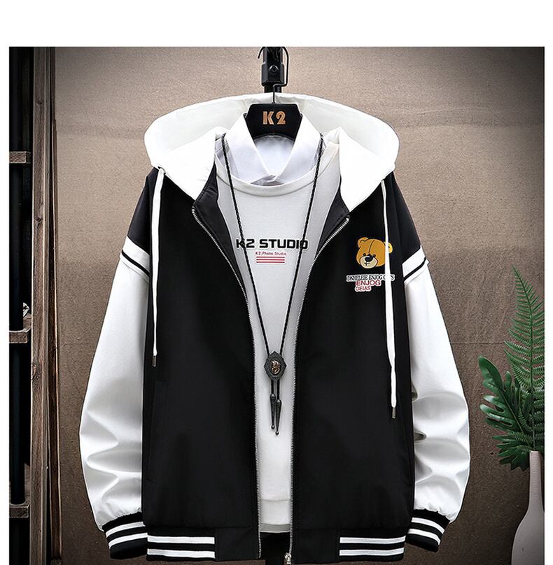 Fleece jacket men's autumn and winter vacation two pieces of tide brand cotton clothes thickened boys hooded youth casual jacket コットン カジュアル オータム 秋物 ウィンター 冬物 doushi34743178069