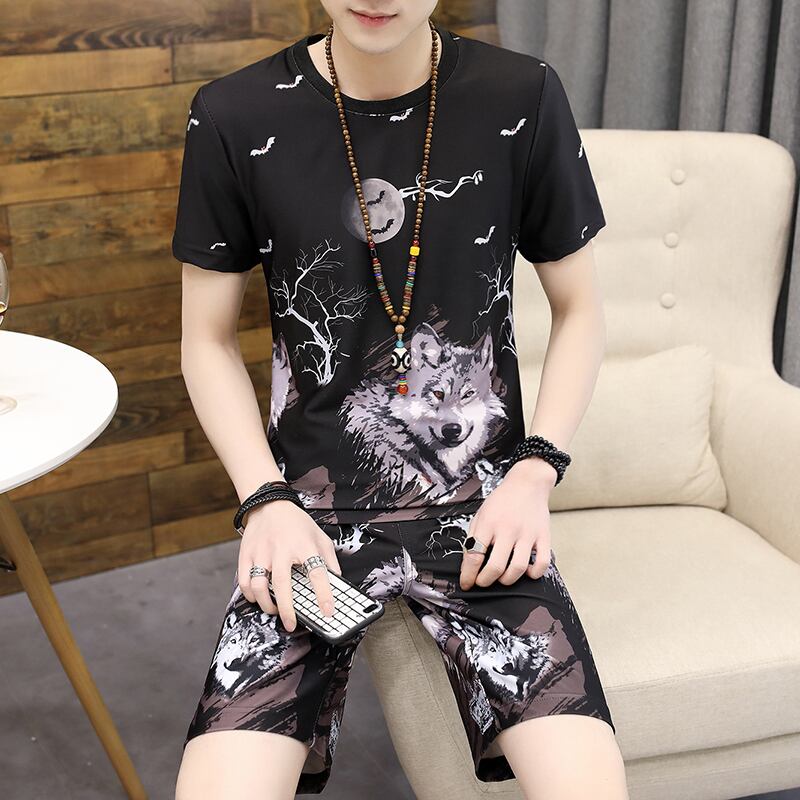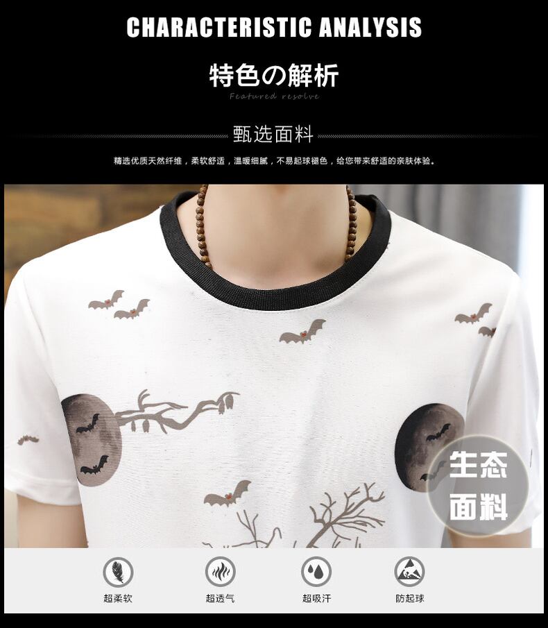 Ice silk short-sleeved t-shirt men's suit summer 2022 new casual loose version trend men's ice clothes カジュアル サマー 夏物 シルク Tシャツ doushi2282297855