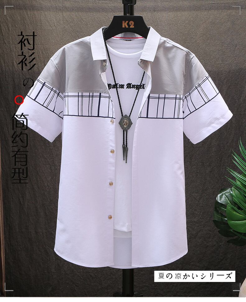 Youth summer thin shirt men's short-sleeved trend casual junior high students summer handsome men's shirt カジュアル サマー 夏物 doushi43245505214
