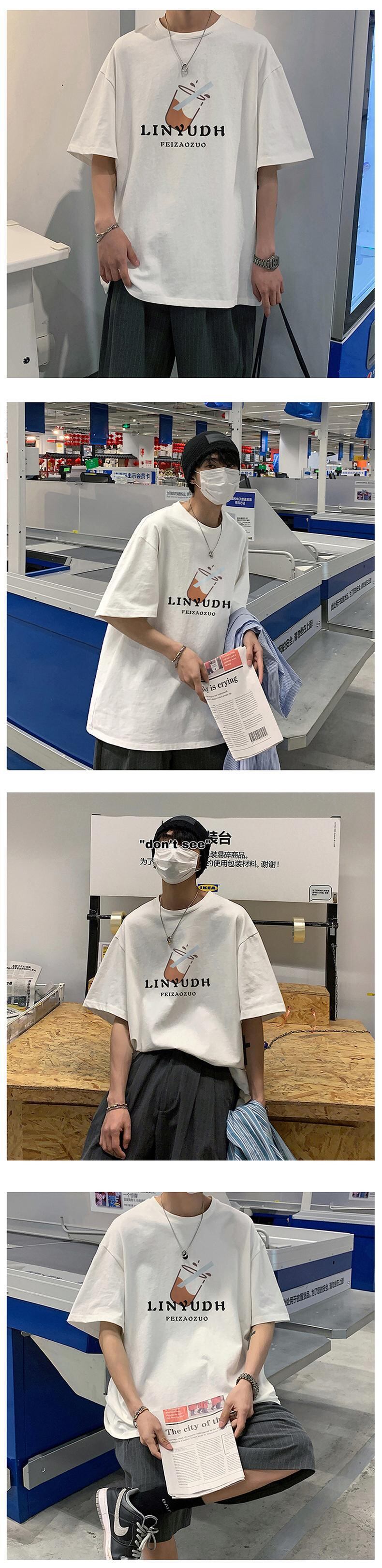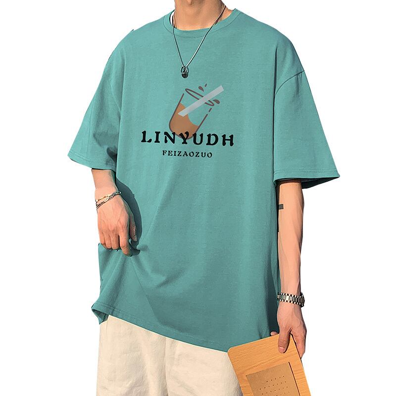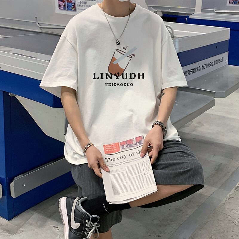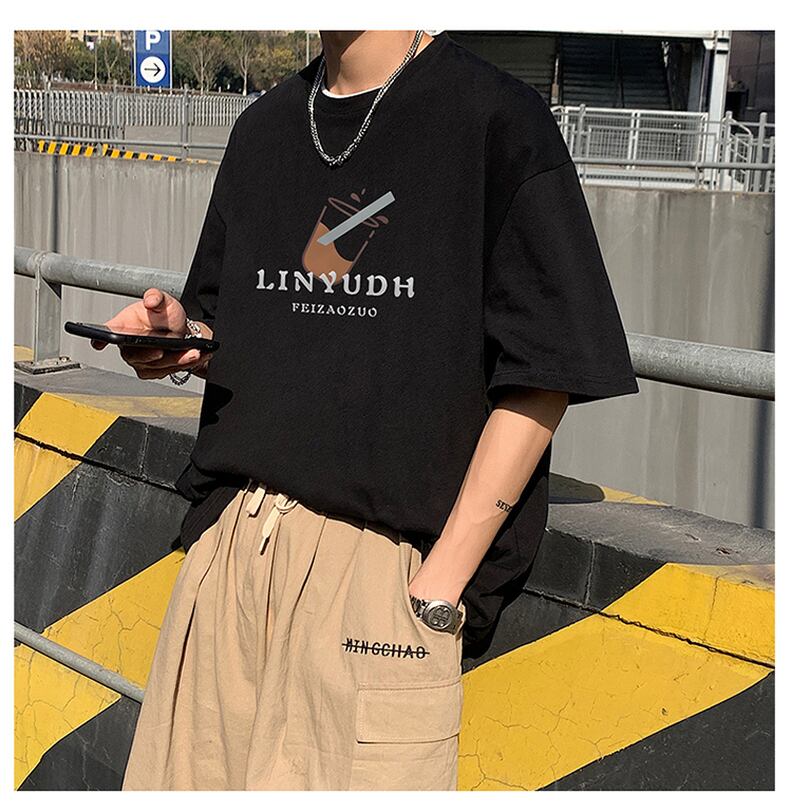Short-sleeved men's tide brand summer thin t-shirt design niche men's cotton large size five-point half-sleeve loose t-shirt コットン 大きめサイズ サマー 夏物 Tシャツ doushi49262149639