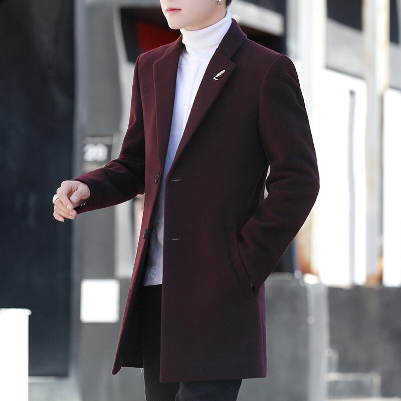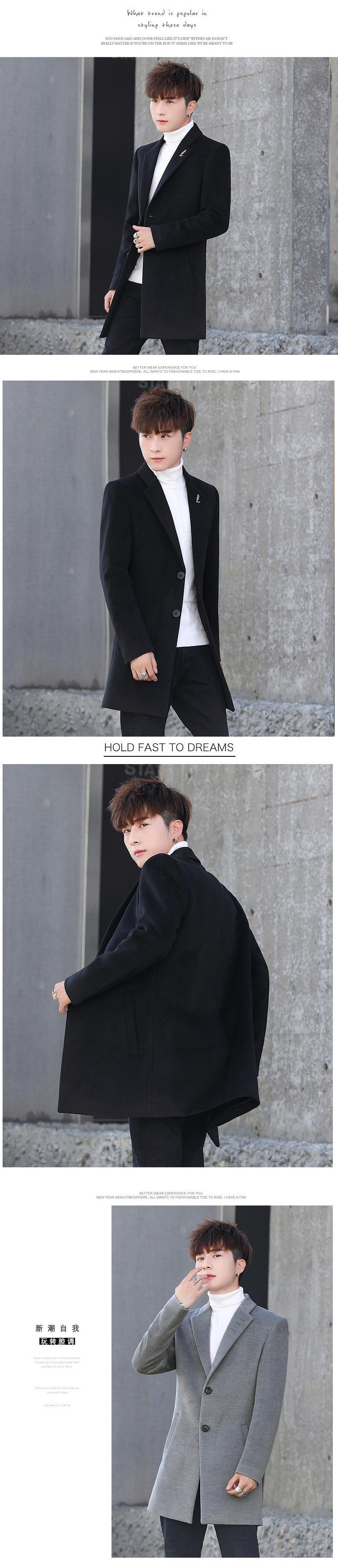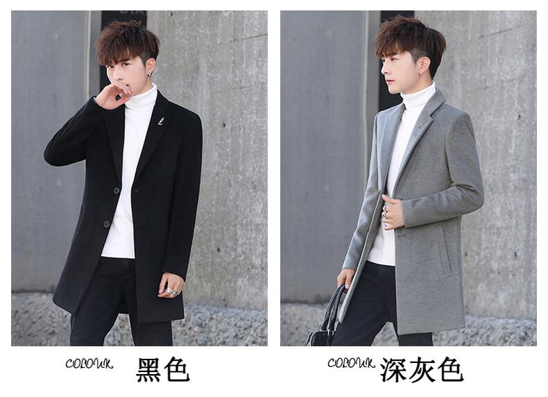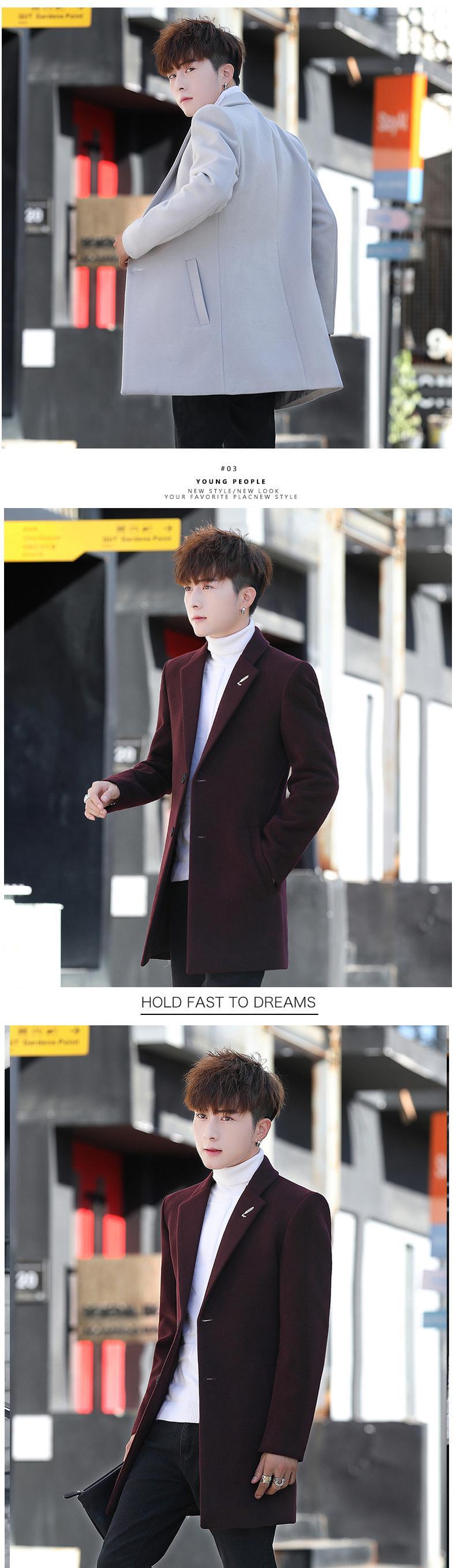 Windbreaker men's mid-length autumn and winter men's woolen coat version trend British style thickened wind woolen coat オータム 秋物 ウィンター 冬物 doushi13194827749