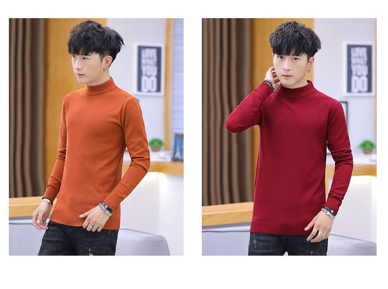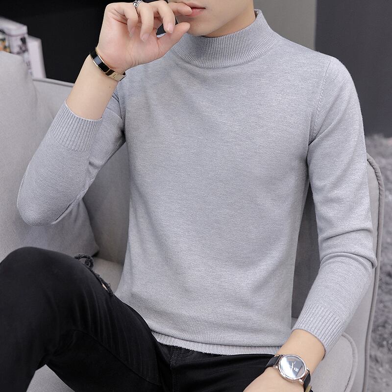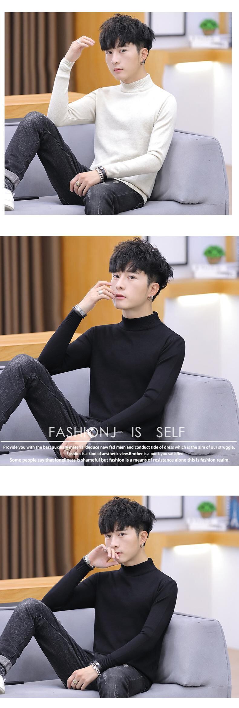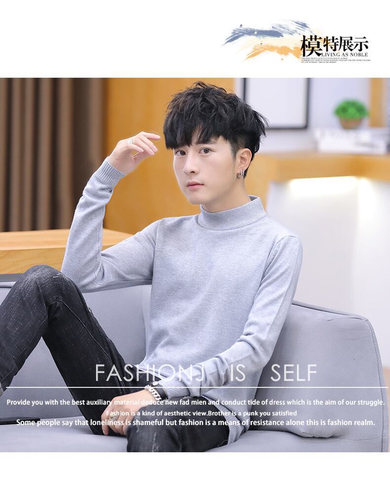 Autumn and winter men's sweater half turtleneck knitted bottoming shirt with trendy student mid-neck slim-fit pure black sweater ブラック オータム 秋物 ウィンター 冬物 ピュア doushi37780299867
