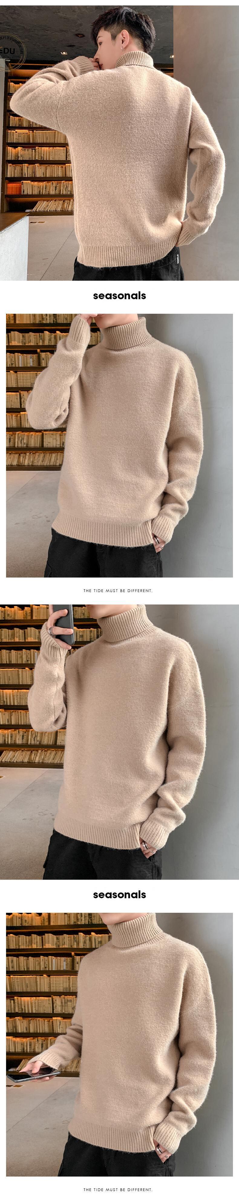 Men's mink velvet turtleneck sweater loose 2022 autumn and winter plus velvet thickening trend inner bottoming knitted sweater オータム 秋物 ウィンター 冬物 doushi77766186233