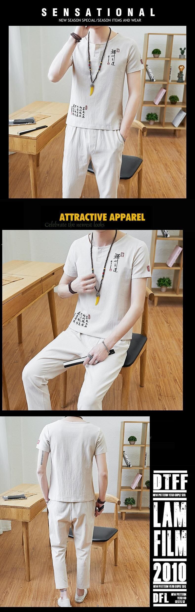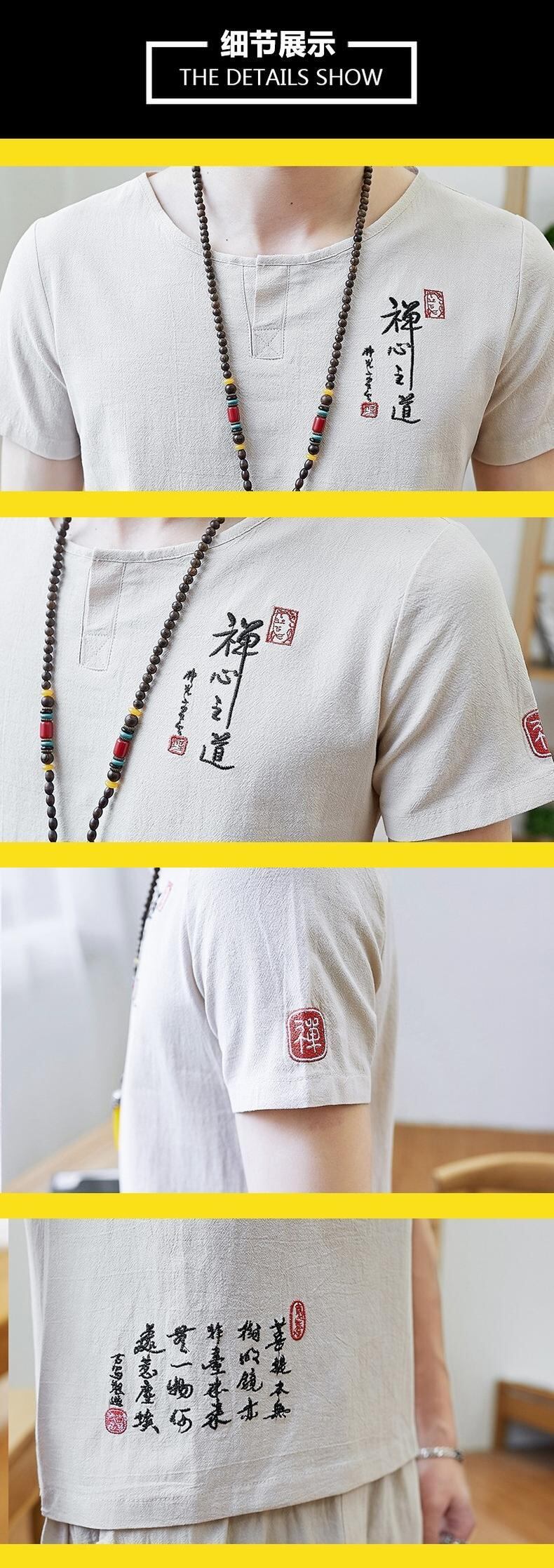 Summer cotton and linen suit men's linen short-sleeved t-shirt 2022 new retro Tang suit casual set of clothes Hanfu v コットン レトロ カジュアル サマー 夏物 Tシャツ doushi24417712409