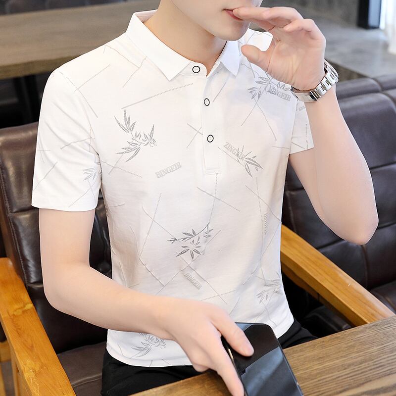 Summer trend ice silk lapel men's t-shirt POLO shirt 2022 new collared short-sleeved men's T-shirt clothes レッド サマー 夏物 シルク Tシャツ doushi34321940295