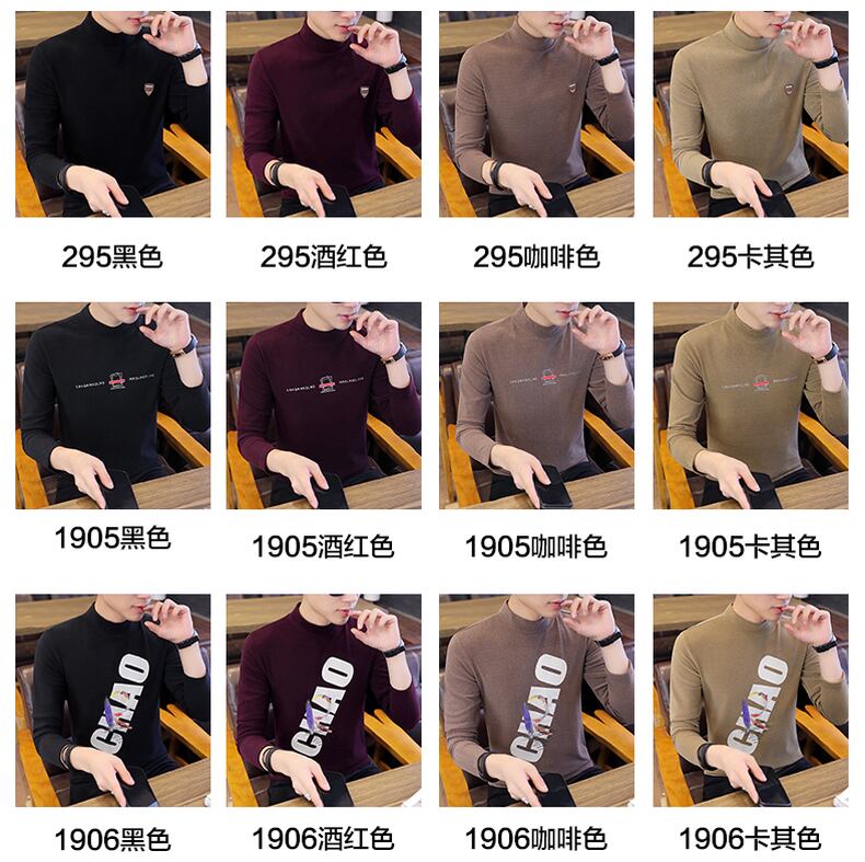 Autumn tops men's half turtleneck t-shirts men's long-sleeved t-shirts version sweaters medium-thick bottoming shirts trendy autumn clothes ロング シャツ オータム 秋物 Tシャツ doushi65468286097