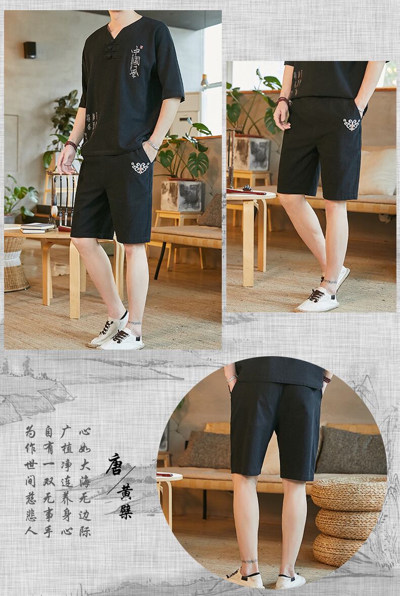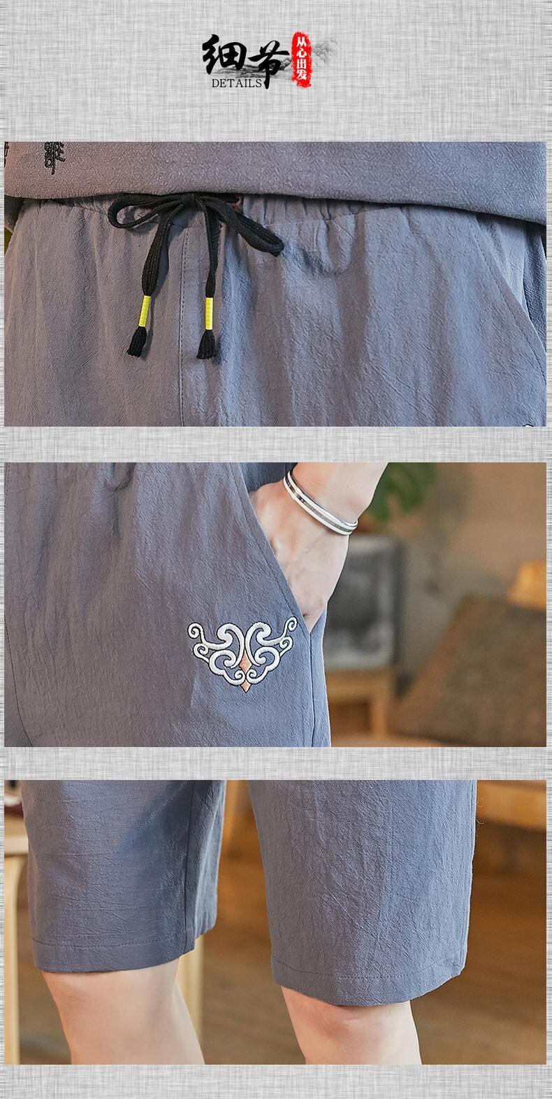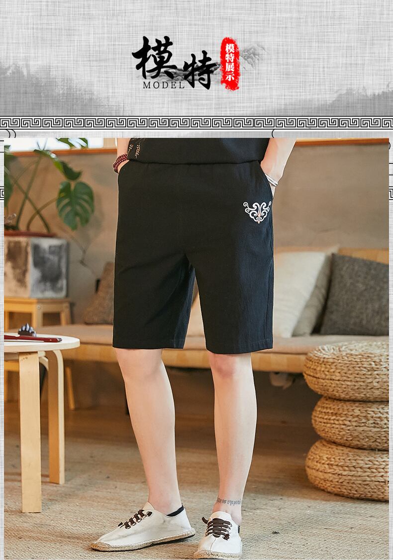 Tide brand shorts men's seven points loose large size linen casual pants men's cotton and linen pants wide-leg beach shorts thin section コットン カジュアル 大きめサイズ ビーチ ショーツ ブルマー doushi5773121172