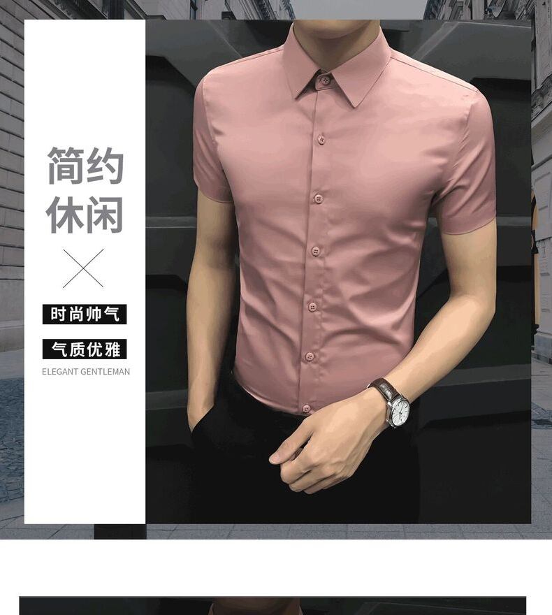 2022 new summer ice silk thin shirt men's short-sleeved slim high-end half-sleeve men's mid-sleeve shirt business inch サマー 夏物 スリム シルク doushi59992695961