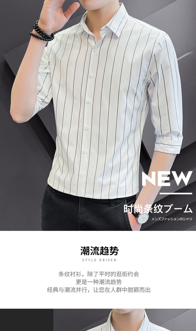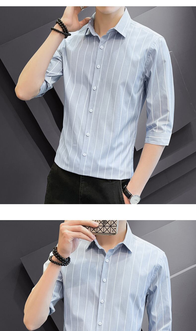 Shirt men's short-sleeved high-end casual slim fit trend handsome 2022 summer new striped three-quarter sleeve shirt カジュアル サマー 夏物 ストライプ スリム doushi45088582076