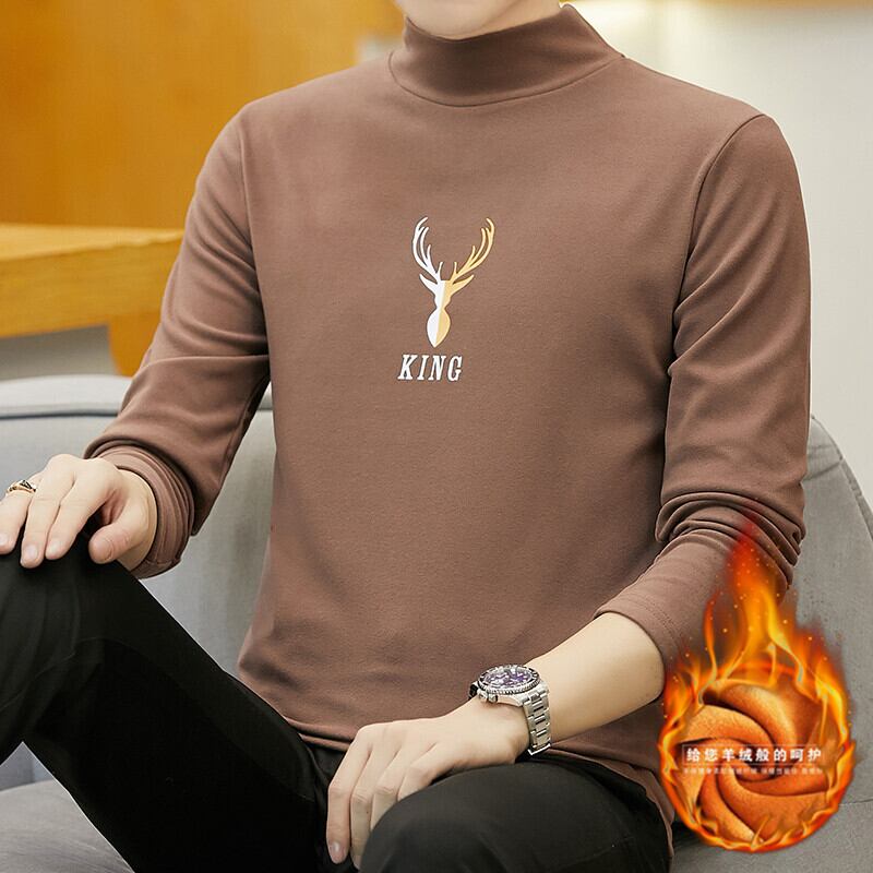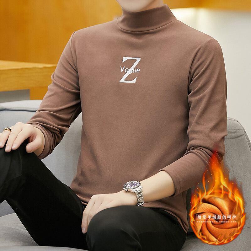 Long-sleeved t-shirt men's autumn winter autumn trend plus velvet thick autumn clothes warm half turtleneck bottoming shirt top clothes sweater ロング オータム 秋物 ウィンター 冬物 Tシャツ doushi80938481956