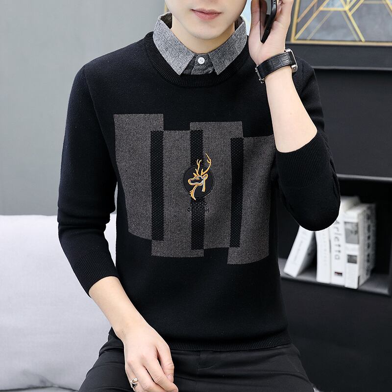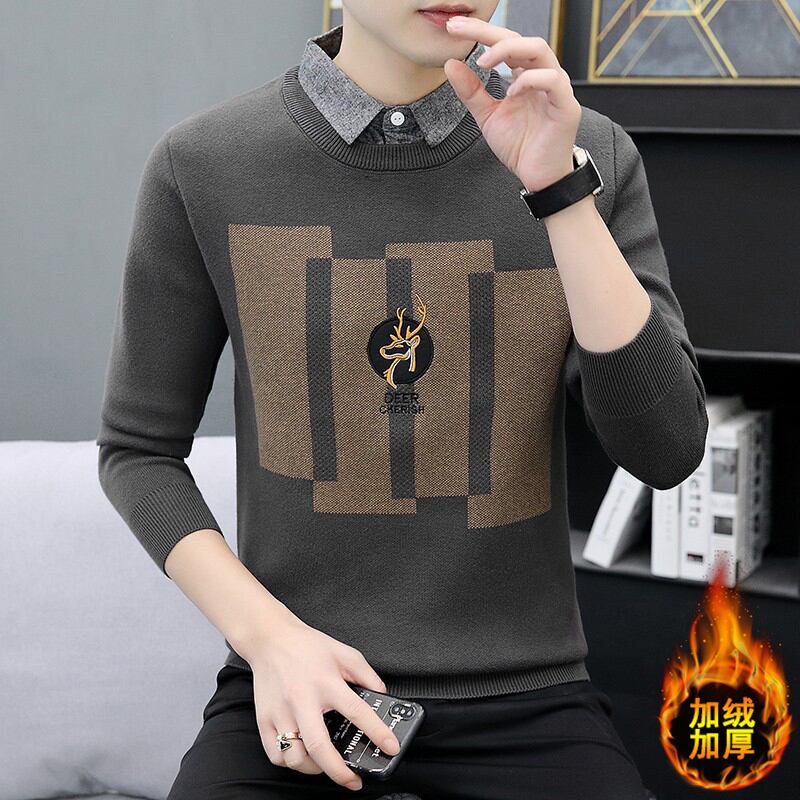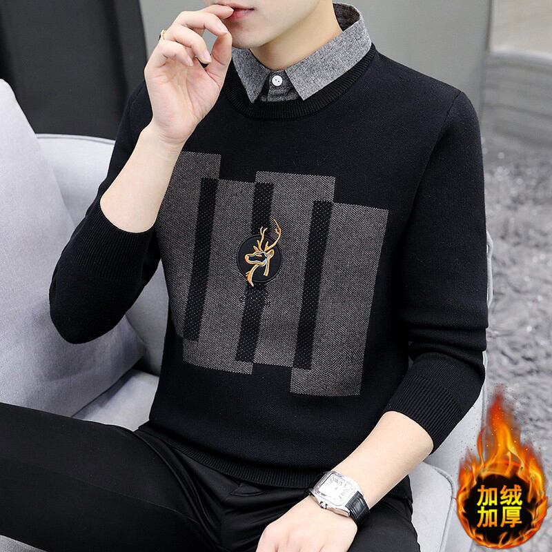 Autumn and winter new fake two-piece shirt collar knitted bottoming shirt men's fake collar tide brand plus velvet thick warm sweater オータム 秋物 ウィンター 冬物 doushi50192234181
