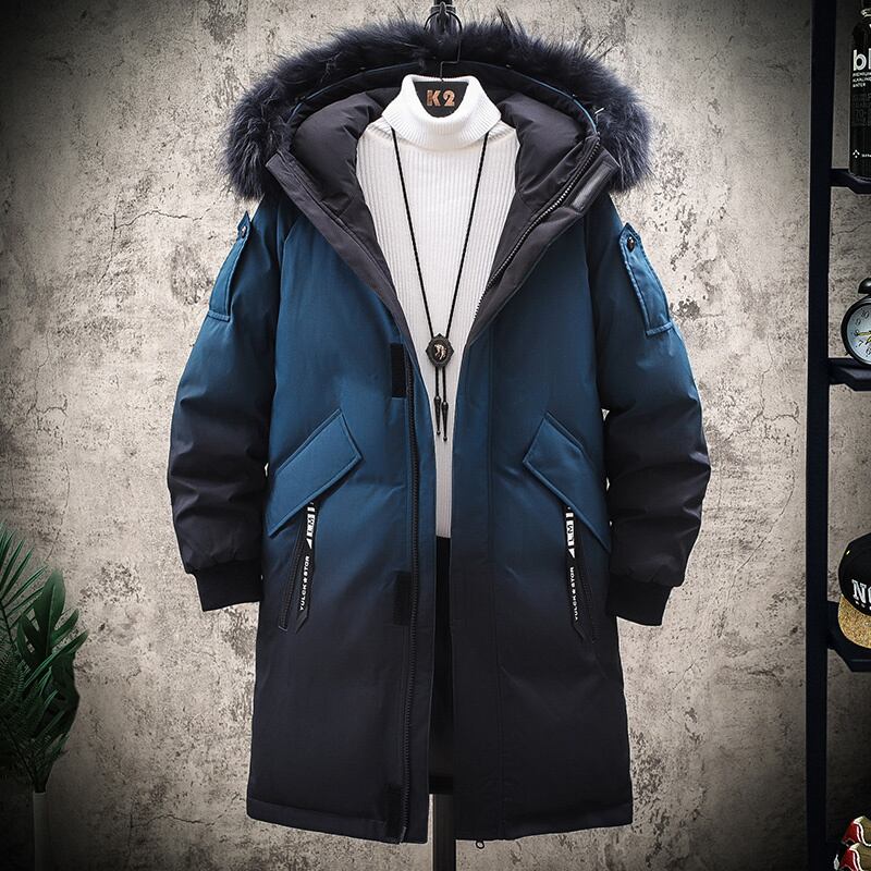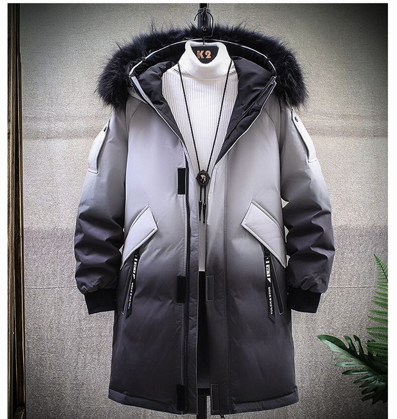 2022 new cotton coat men's mid-length winter coat down cotton coat big fur collar version trend cotton jacket gradient color コットン ウィンター 冬物 doushi83914972664