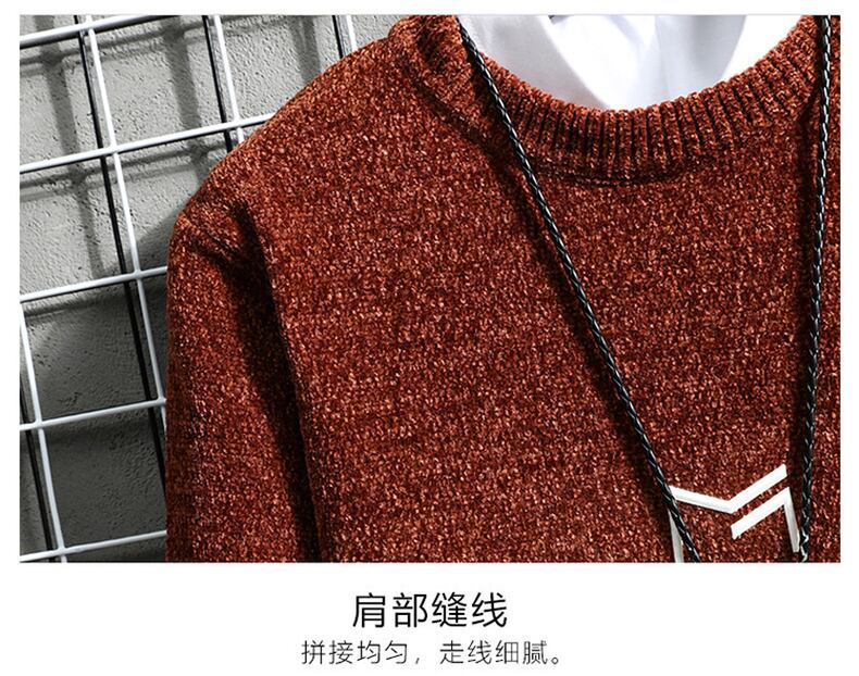 Chenille sweater men's autumn and winter 2022 new version trend men's sweater winter plus velvet thick bottoming shirt オータム 秋物 ウィンター 冬物 doushi86301260819