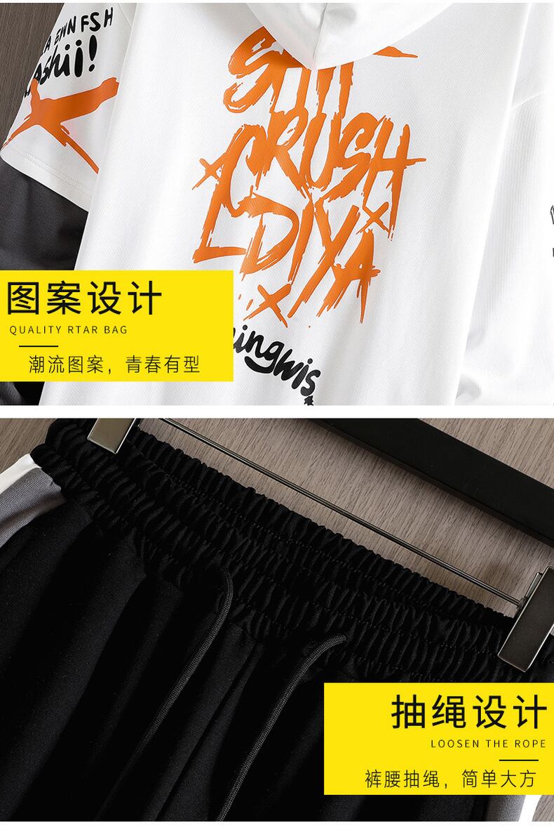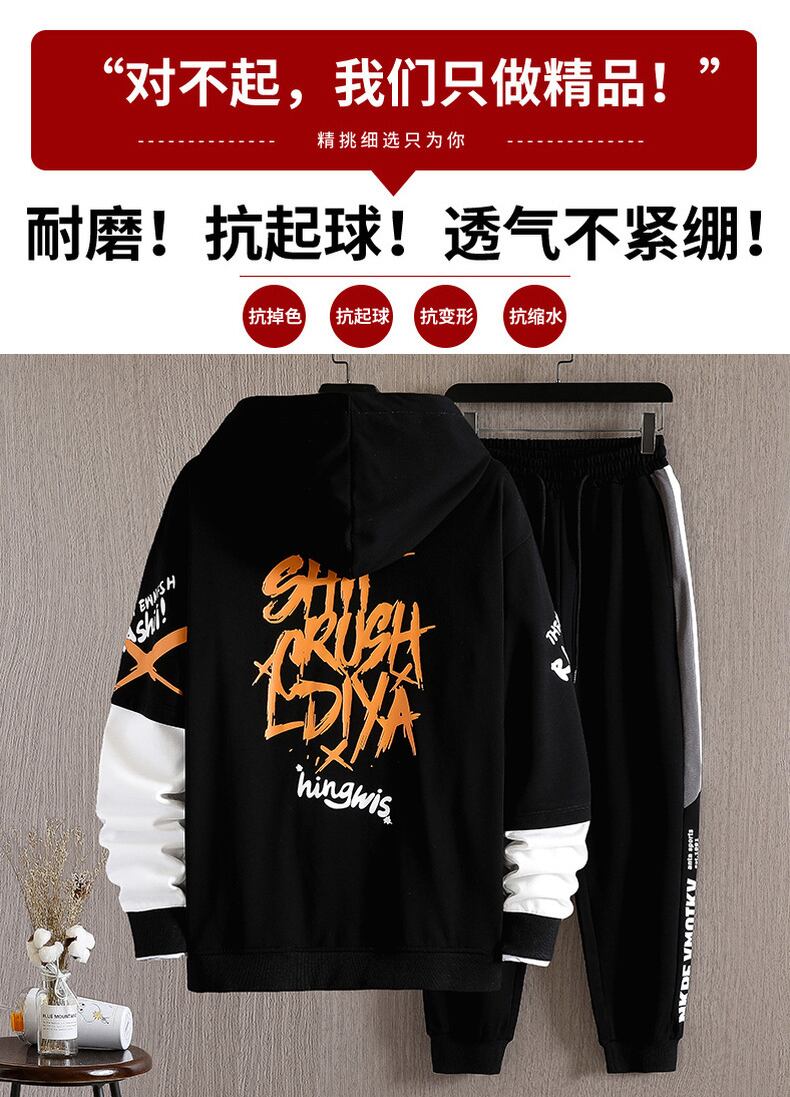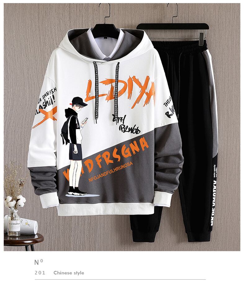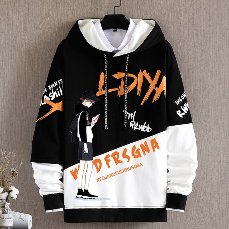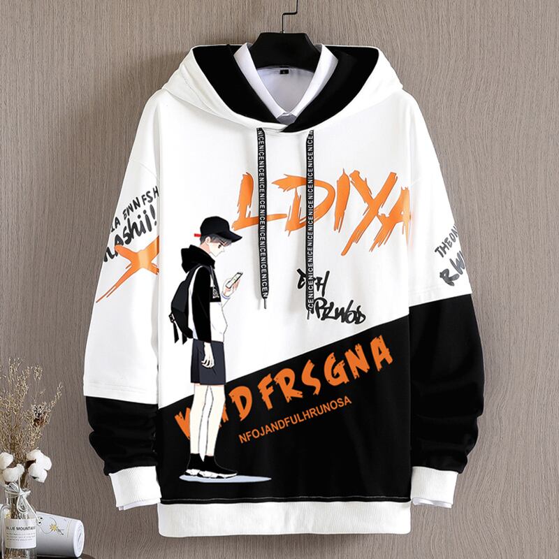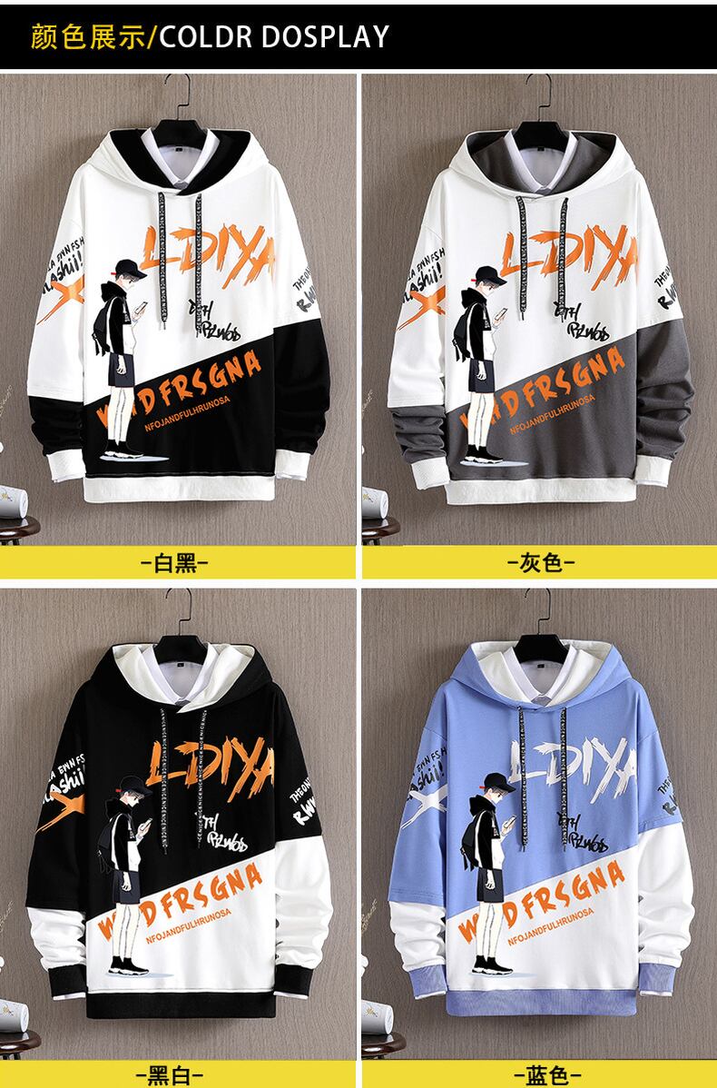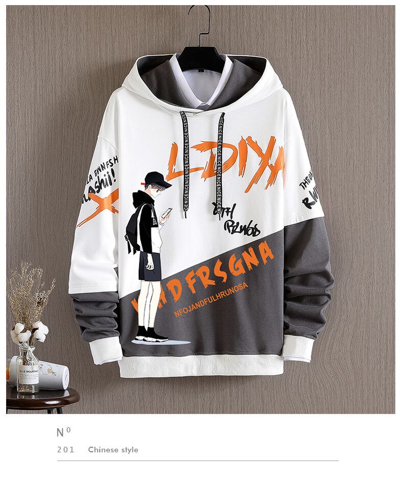 Hooded sweater men's autumn new version trend color matching loose knitted graffiti print teen top suit オータム 秋物 doushi9853556031