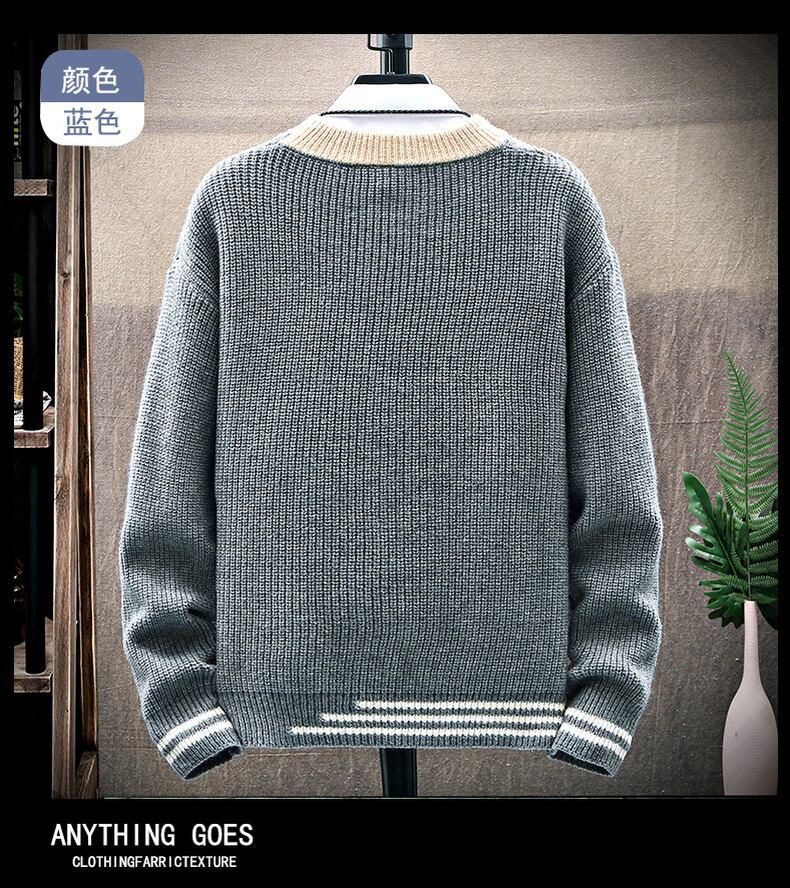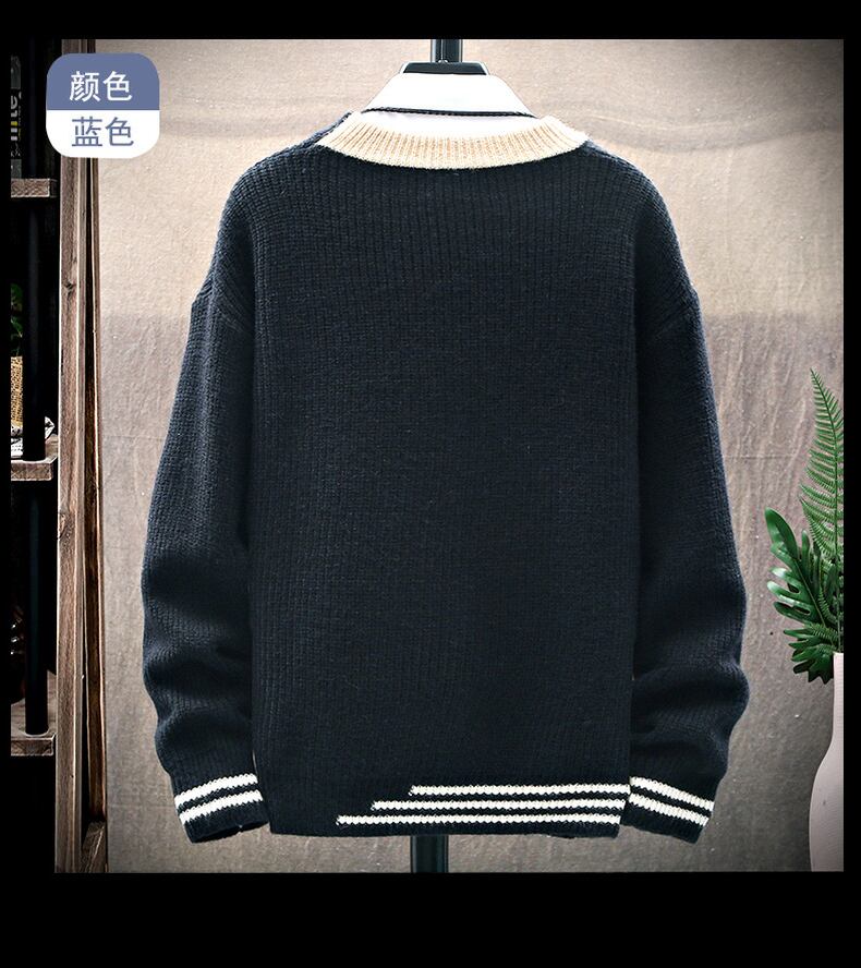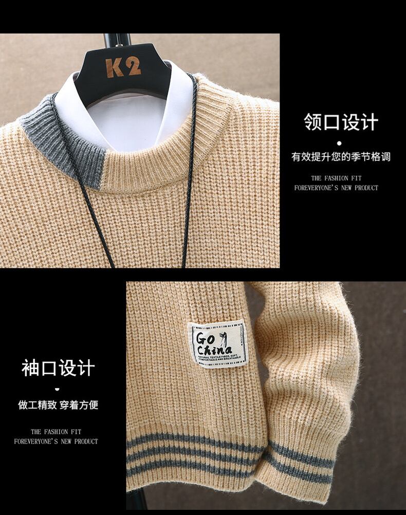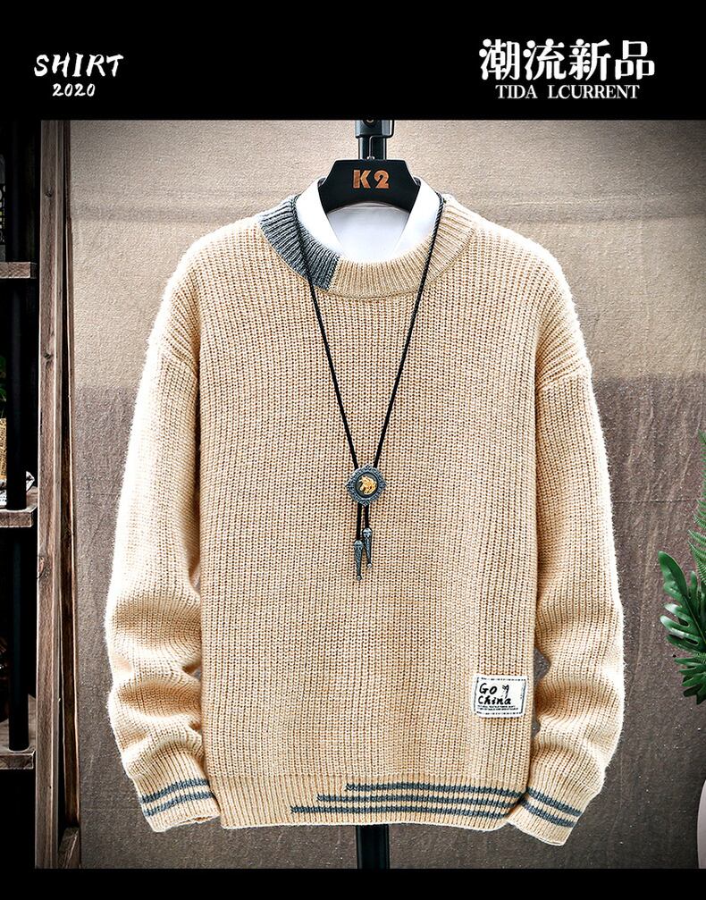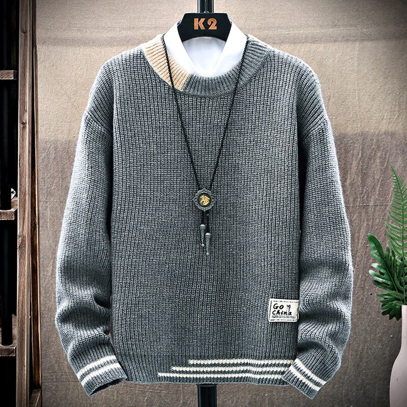 Loose round neck personalized letter embroidered label men's sweater autumn and winter tide brand trend version long-sleeved t-shirt sweater ロング レッド 刺繍 オータム 秋物 ウィンター 冬物 Oネック Tシャツ doushi84034426246