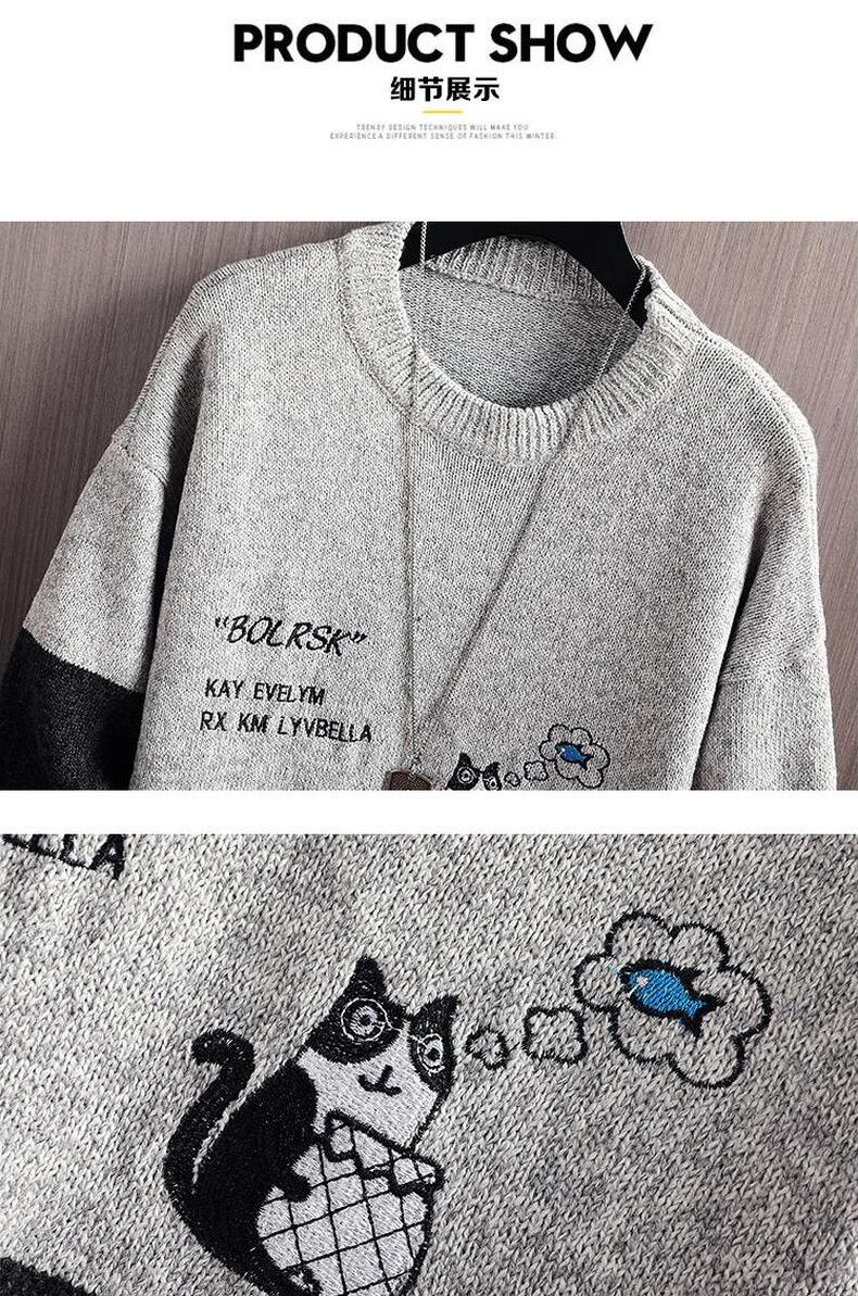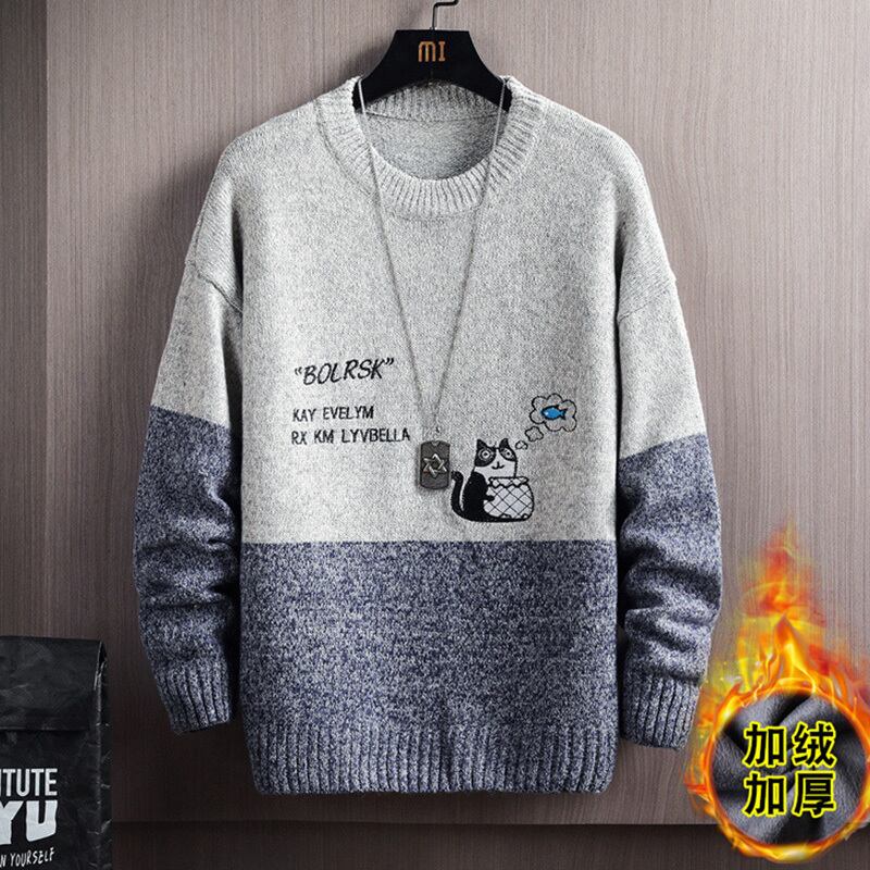 Autumn and winter new men's youth loose knitted sweater 2022 wool sweater plus velvet thick version of the student sweater オータム 秋物 ウィンター 冬物 doushi3236634002