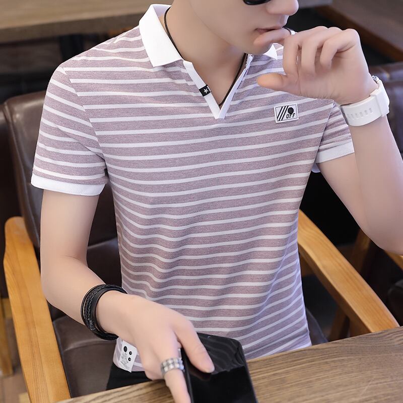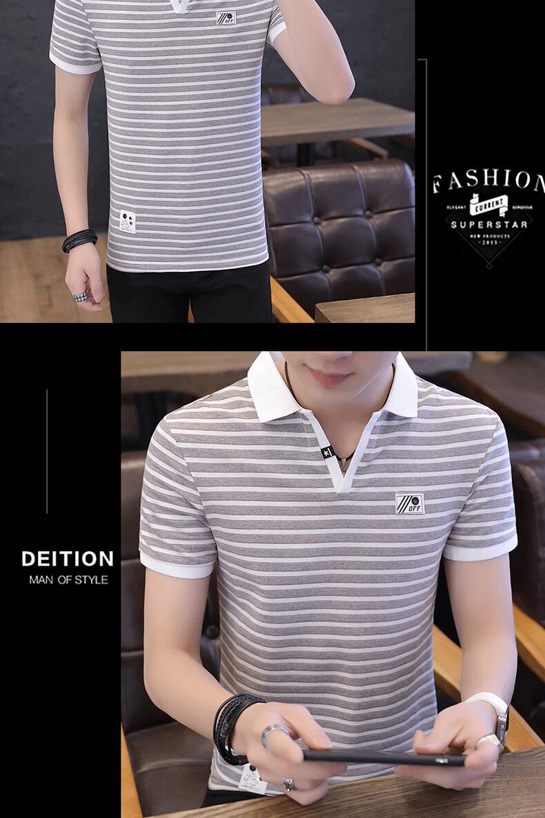 2022 summer new men's short-sleeved t-shirt striped version of the trend half-sleeved clothes men's polo shirt tide brand ins サマー 夏物 ストライプ Tシャツ doushi15478170249