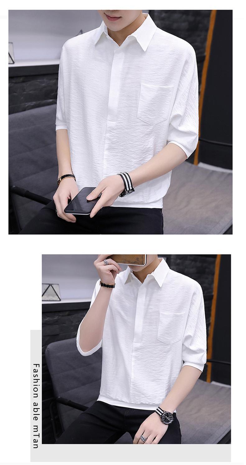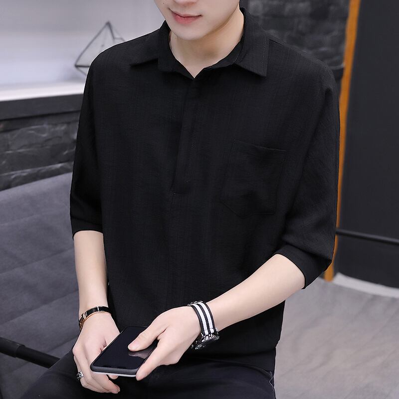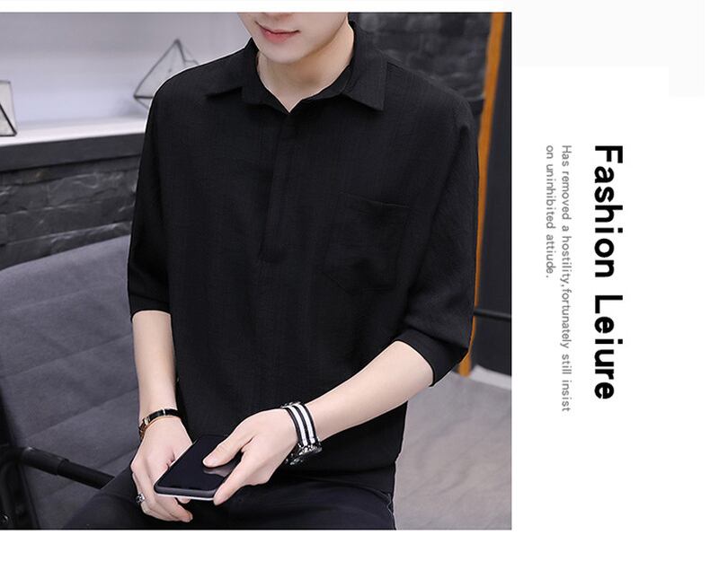 Men's three-quarter sleeve pullover shirt elastic waist spring and summer version of the trend in the sleeve shirt short-sleeved shirt trendy T-shirt エラスティック 伸縮 スプリング 春物 サマー 夏物 Tシャツ doushi10650945518
