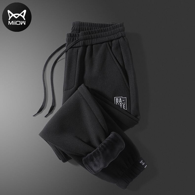 Men's winter waffle pants men's plus velvet thick casual trousers straight loose loose-fitting leggings harem pants men カジュアル ウィンター 冬物 doushi595316286