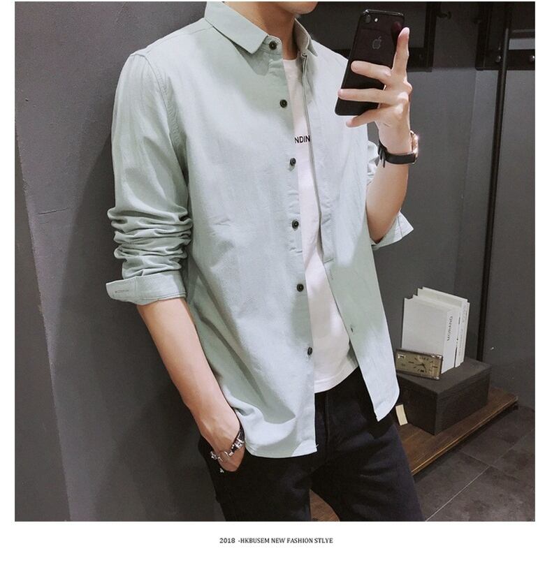 Autumn Hong Kong style ins solid color shirt men's long-sleeved version of the trend plus velvet thick coat casual autumn and winter shirt ロング カジュアル オータム 秋物 ウィンター 冬物 ソリッドカラー doushi26796617129