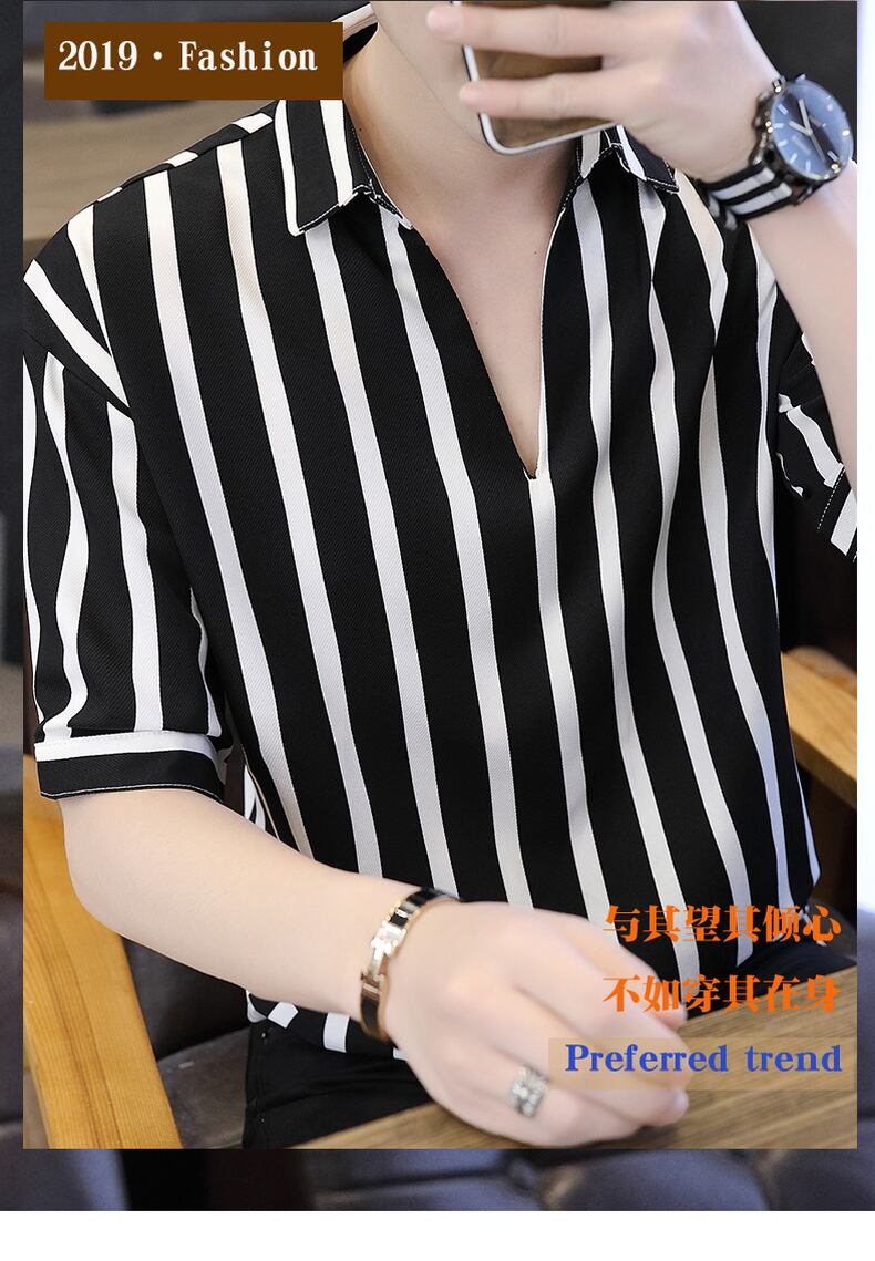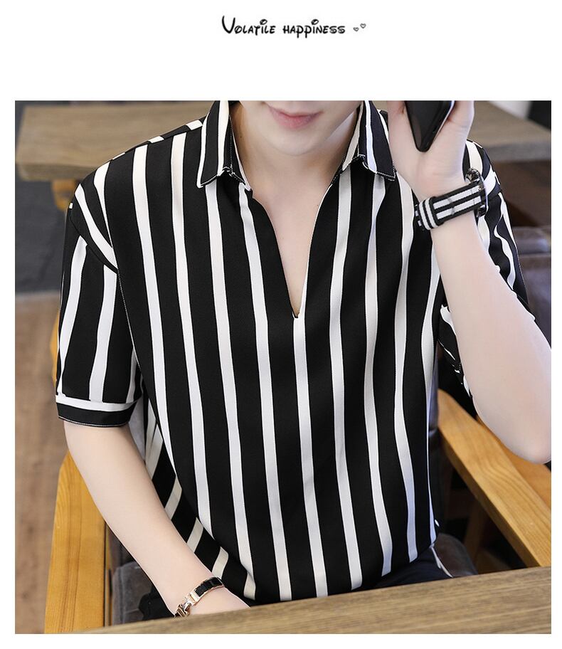 Summer loose striped shirt short-sleeved t-shirt men's version of the trend of five-point sleeves 7 points free ironing quick-drying T-shirt half sleeves 半袖 ハーフスリーブ サマー 夏物 ストライプ Tシャツ doushi48686036442