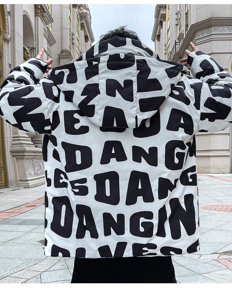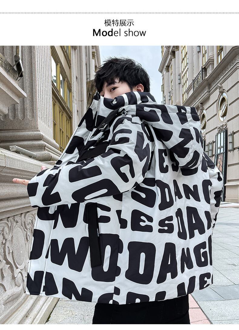 Printed hooded cotton coat men's autumn and winter coat new thickened cotton jacket hit color tide brand couple down cotton clothing tide コットン プリント オータム 秋物 ウィンター 冬物 doushi47685556633