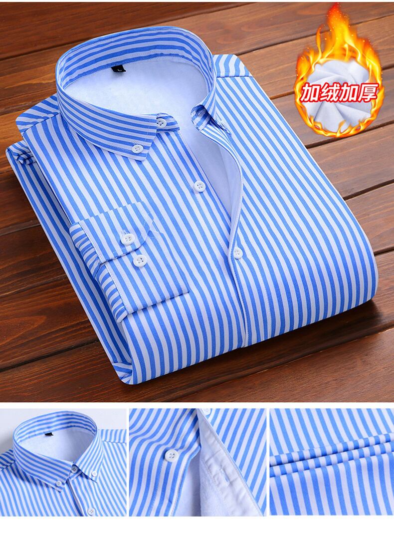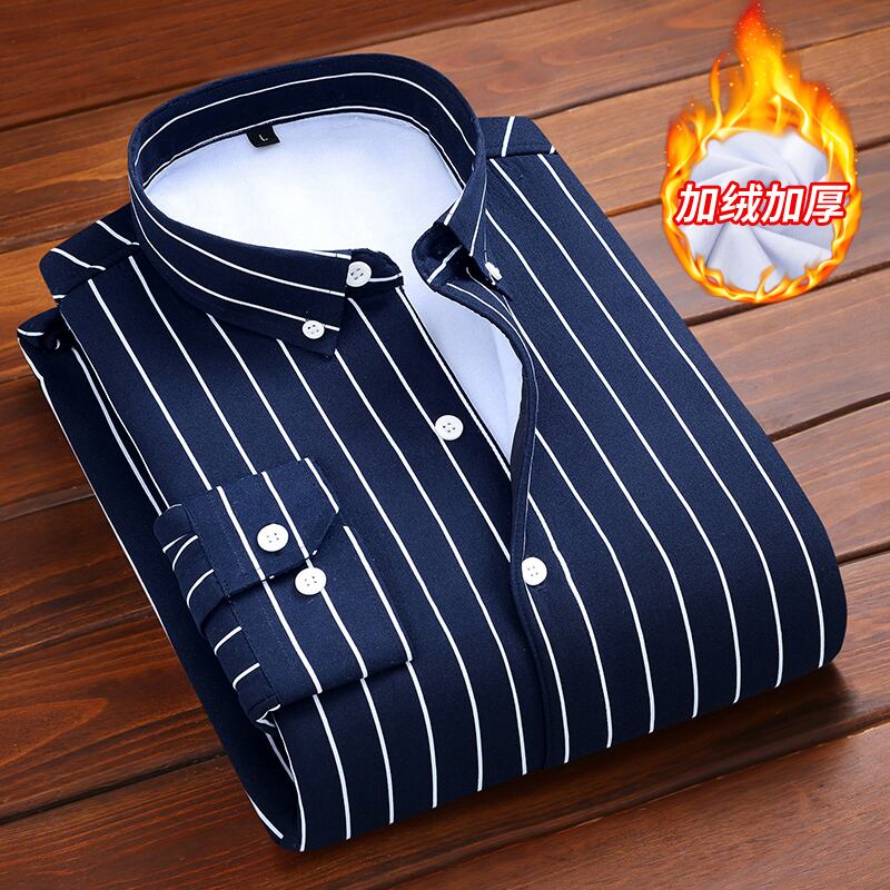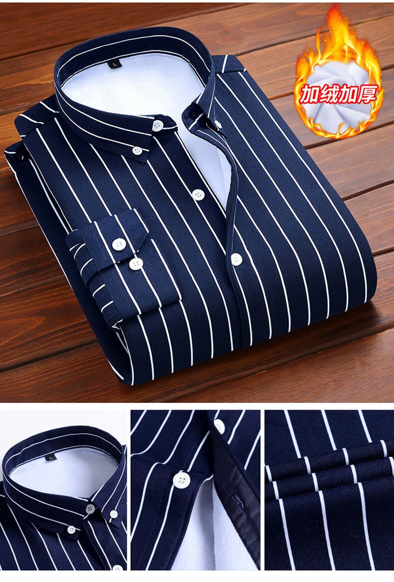 Long-sleeved shirts men's autumn and winter tide brand casual thickening warm striped shirts trendy handsome plus velvet jacket ロング カジュアル シャツ オータム 秋物 ウィンター 冬物 ストライプ doushi9832167824