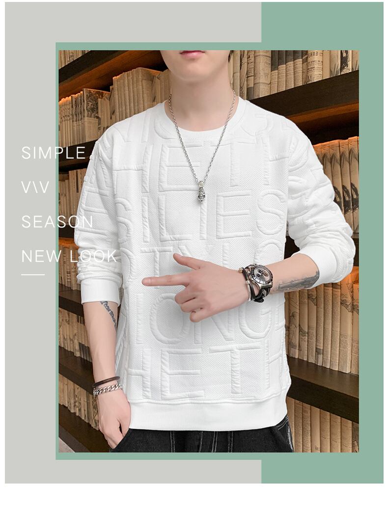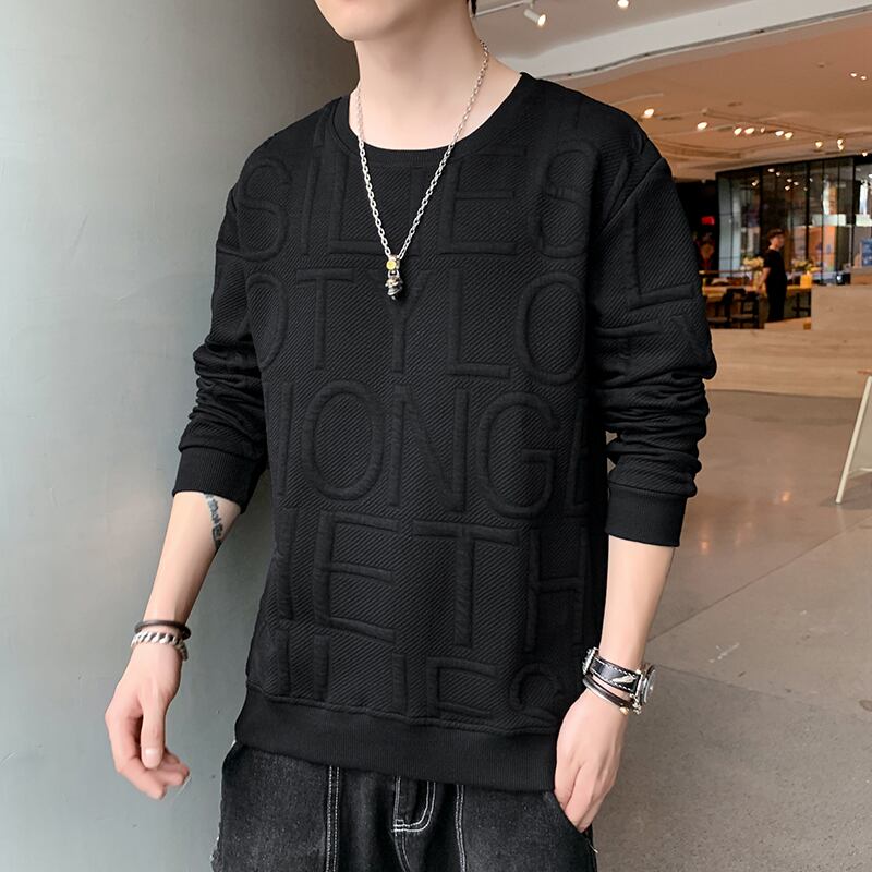 2022 new round neck sweater men's spring and autumn loose autumn clothes men's autumn clothes top clothes tide brand ins long-sleeved T-shirt ロング スプリング 春物 オータム 秋物 Oネック Tシャツ doushi65646426836