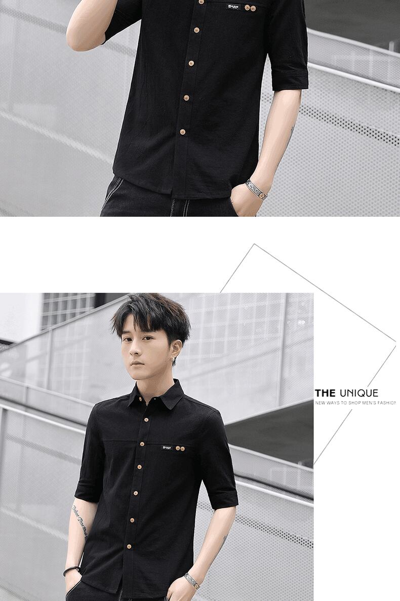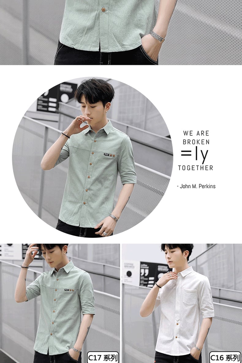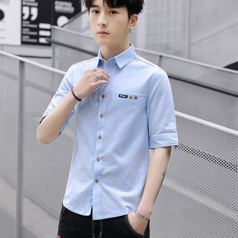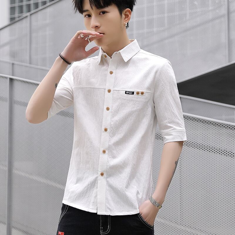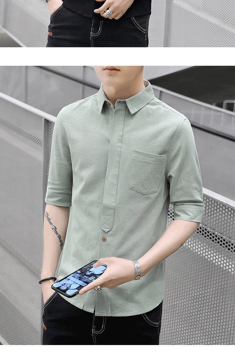 Men's shirt five-point sleeve 2022 new trend summer casual cotton shirt simple solid color summer men's jacket コットン カジュアル サマー 夏物 ソリッドカラー doushi86481331458