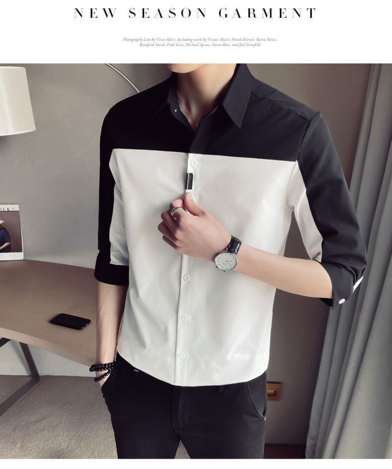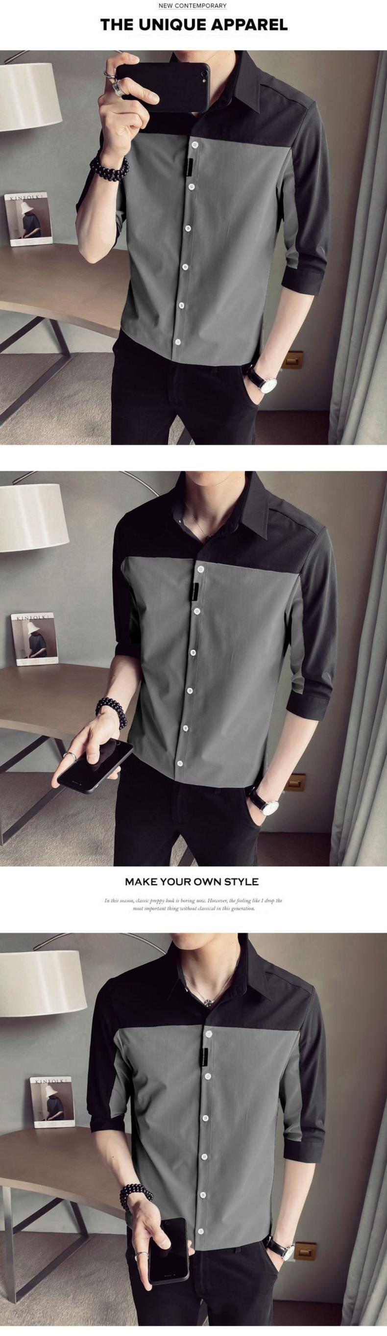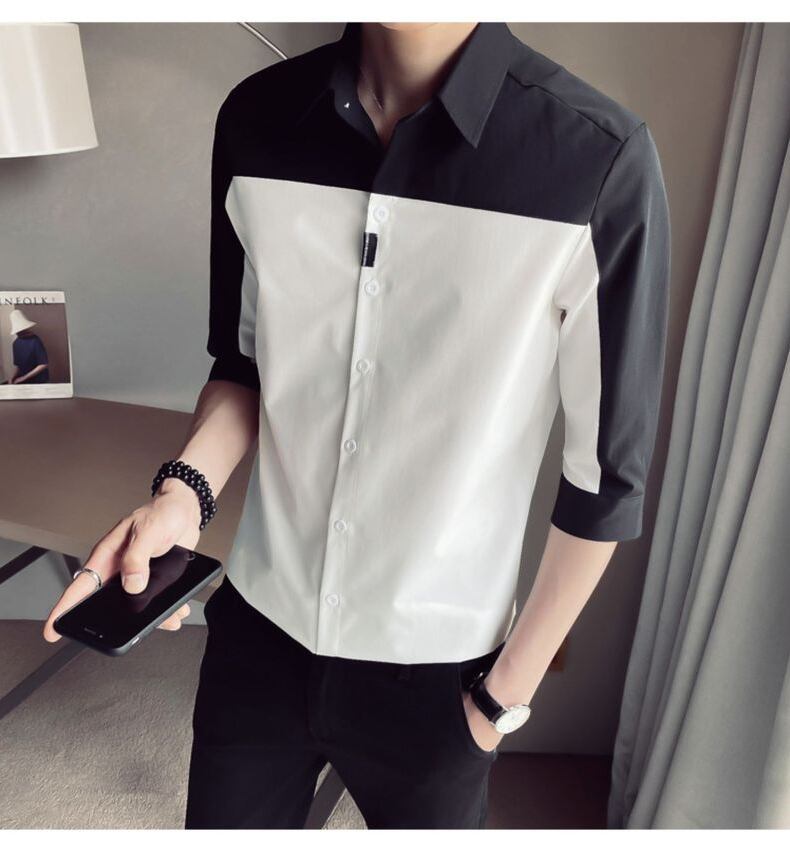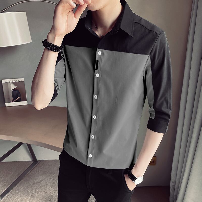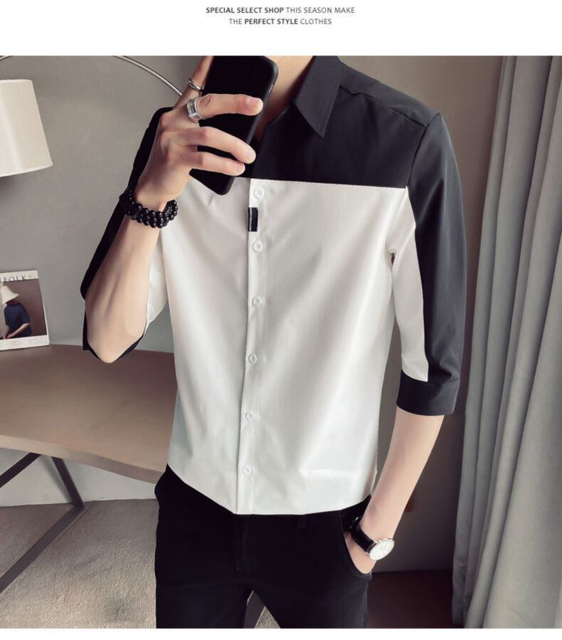 Summer short-sleeved stitching shirt men's trendy three-quarter sleeves version of the slim design inch shirt handsome mid-sleeve casual shirt カジュアル サマー 夏物 スリム ステッチ doushi54525484395