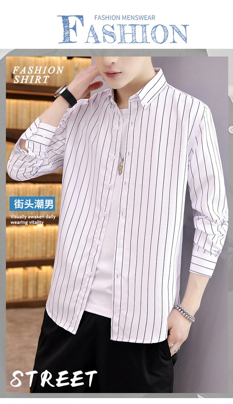Seven-point short-sleeved shirt men's 2022 summer new trend ins striped shirt slim and handsome five-point sleeve inch shirt サマー 夏物 ストライプ スリム doushi79358991074
