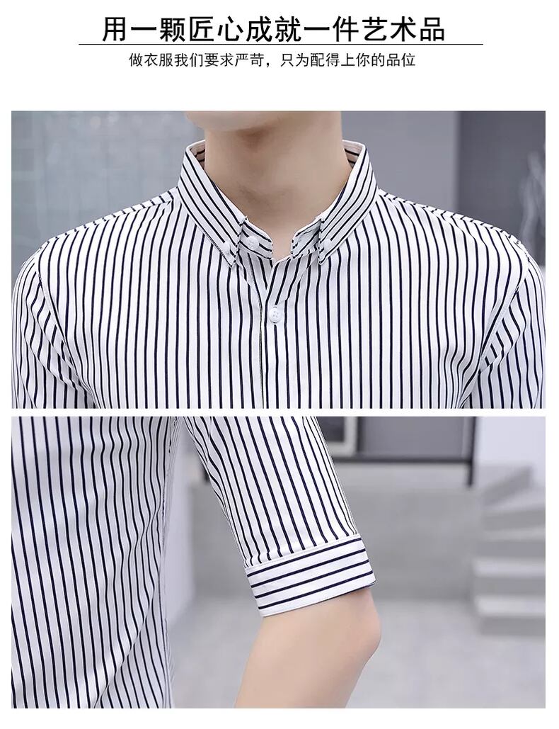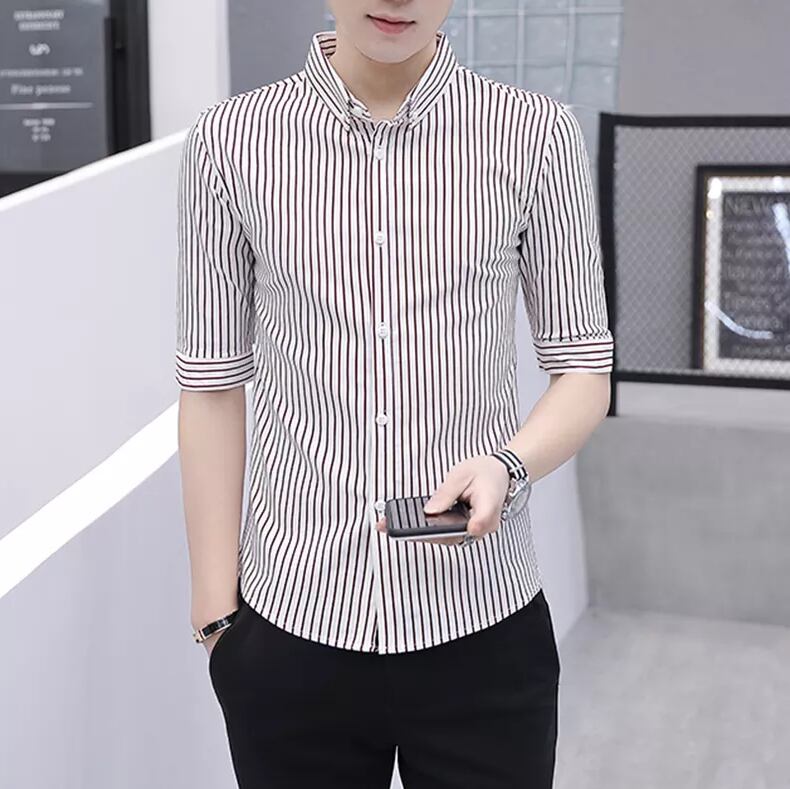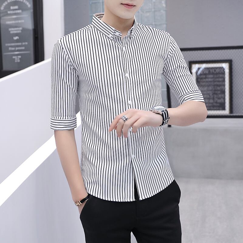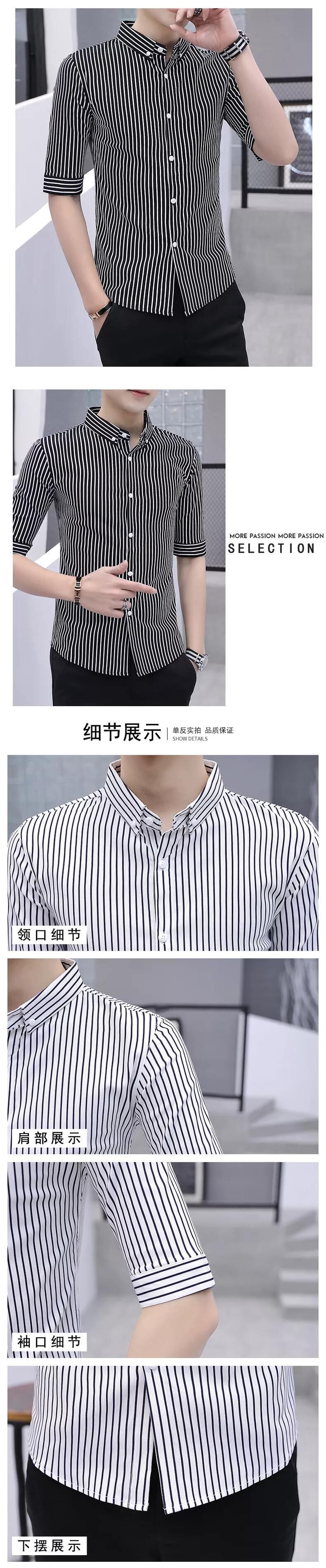 Summer striped mid-sleeve shirt men's style slim short-sleeved inch shirt men's trend half-sleeve casual three-quarter sleeve shirt カジュアル サマー 夏物 ストライプ スリム doushi47414122451