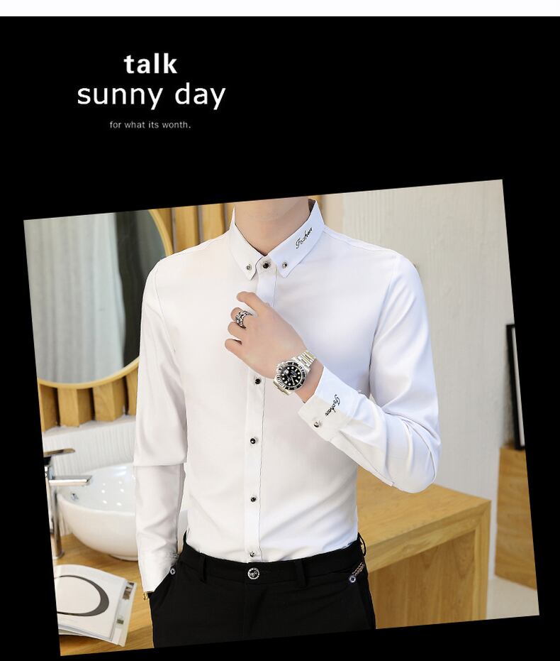 Spring and summer white shirt men's long-sleeved slim men's shirt business casual handsome non-iron anti-wrinkle inch shirt trend ロング ホワイト カジュアル スプリング 春物 サマー 夏物 スリム doushi91811750910