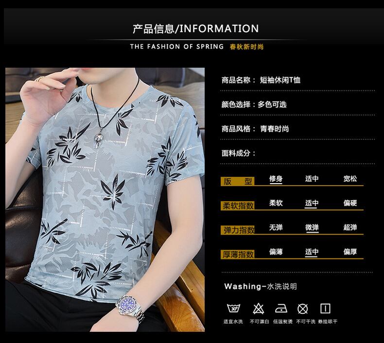 Ice Silk Hollow Short Sleeve T-Shirt Men's Summer Trend Versatile Top Round Neck Slim Fit Half Sleeve T-Shirt Tide ショート 半袖 ハーフスリーブ サマー 夏物 Oネック スリム シルク Tシャツ doushi96739799701
