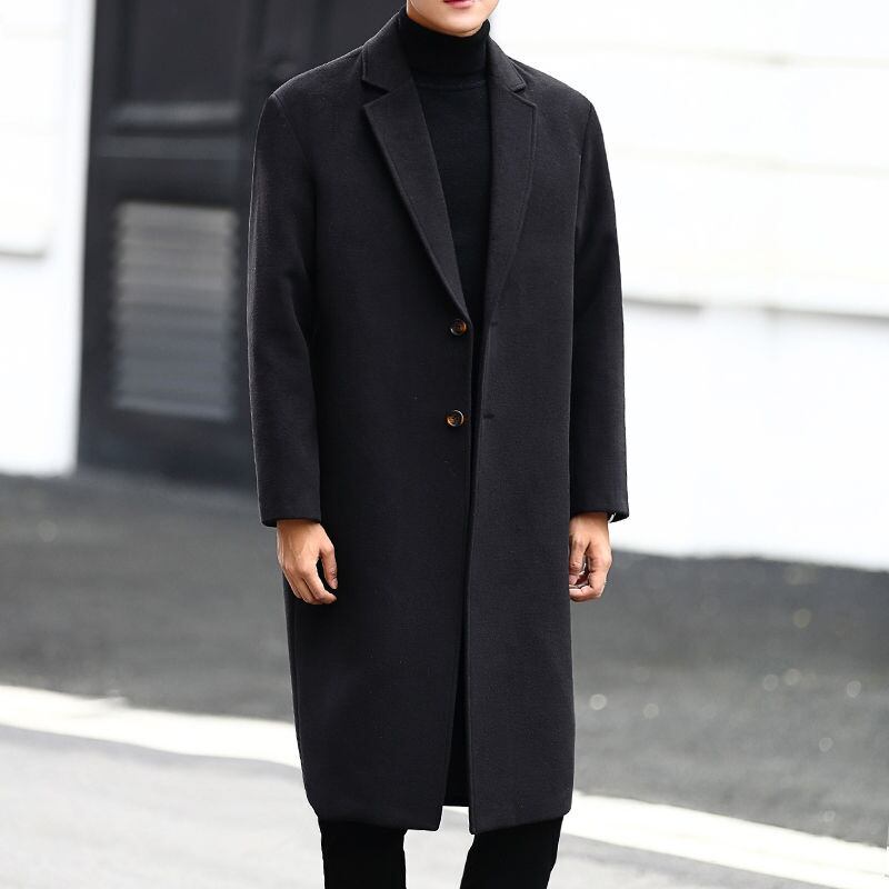 Windbreaker men's version of the trend in the long section handsome over the knee coat British style autumn and winter ins couples woolen coat ロング オータム 秋物 ウィンター 冬物 doushi53518646238