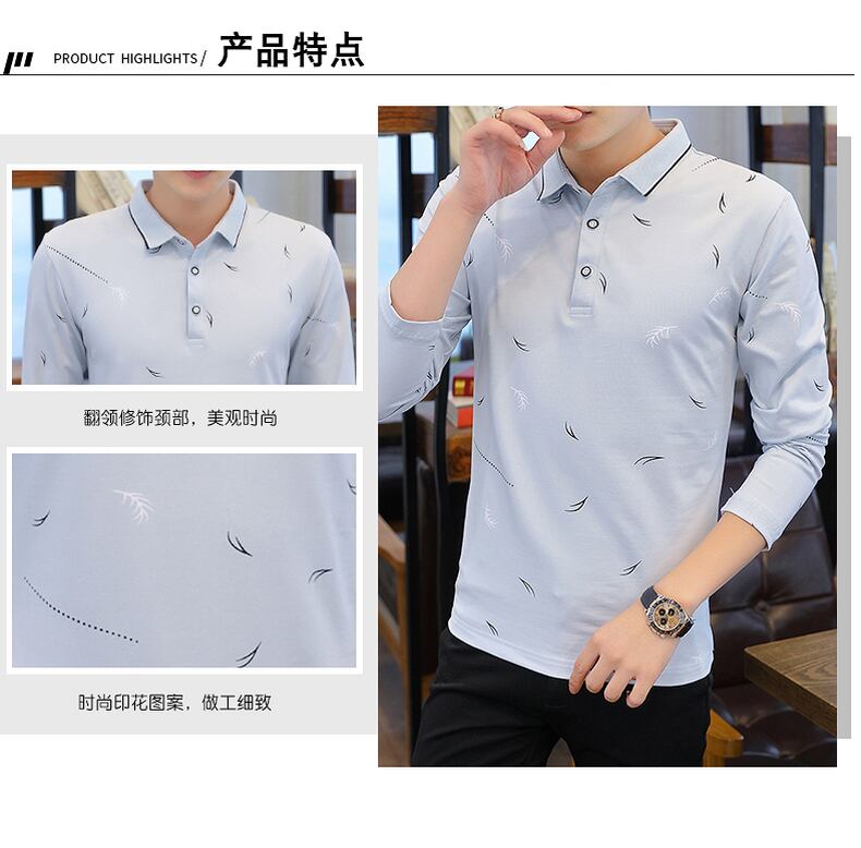 2022 new autumn polo shirt men's lapel long-sleeved t-shirt slim youth handsome trend printing bottoming shirt ロング オータム 秋物 スリム Tシャツ doushi22848517006