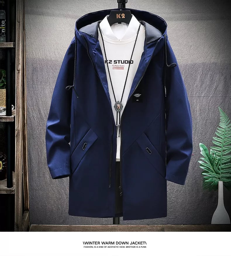 Windbreaker men's casual autumn and winter clothing middle students plus velvet thickened youth jacket mid-length jacket カジュアル オータム 秋物 ウィンター 冬物 doushi31179426310